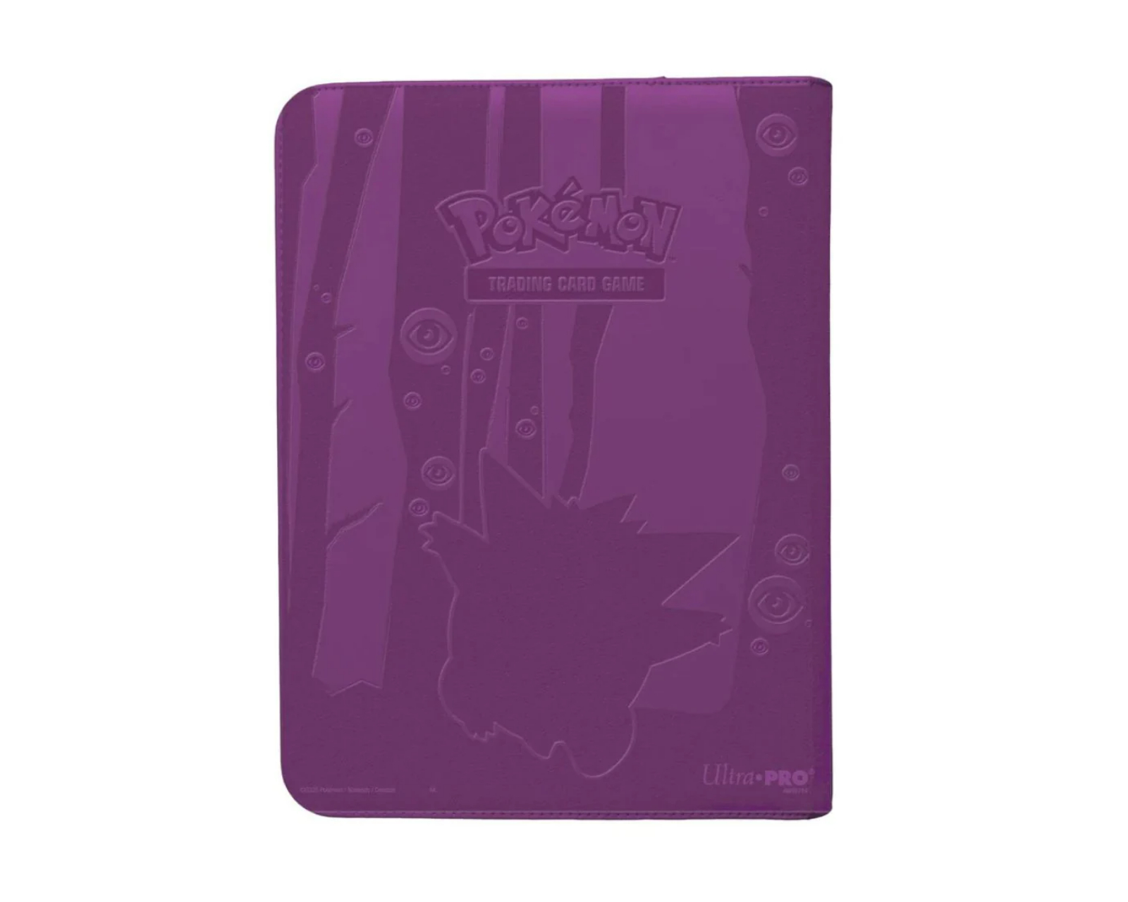 Ultra PRO: Elite Series Gengar 12-pocket Zipper Binder is a storage solution for collectible cards from Pokémon. This binder is specifically designed to organize these cards and features a sleek design with a Gengar motif. It is compatible with Ultra PRO Deck Protector® sleeves and offers space for up to 480 cards, making it suitable for both beginners and experienced collectors. It is also equipped with a zipper for secure storage of the collection. This binder is made with a padded leather-like material that provides an elegant finish and includes foil details for added style. The binder holds twenty pages, each with twelve pockets, ensuring both structure and access to the cards. The pages are designed with a low-friction black backing, keeping the cards separated and giving them a framed look. The binder is made from acid-free, non-PVC materials which help preserve the condition of the cards over time. Summary- 12-pocket Zippered PRO-Binder