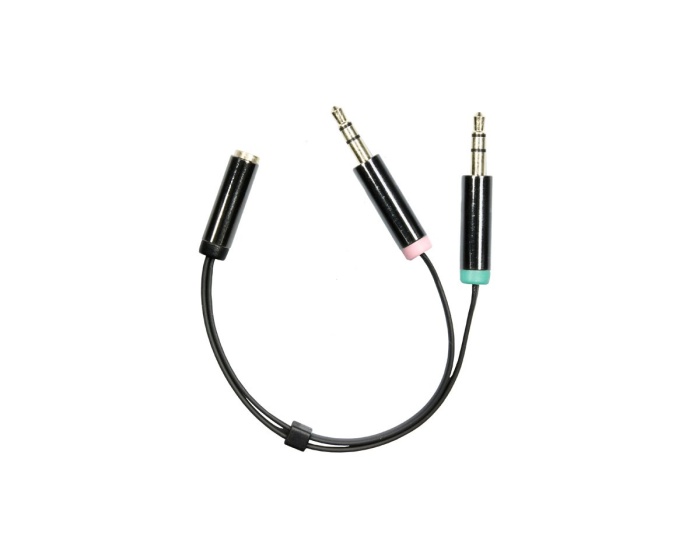 DELTACO adapter, 3,5mm microphone male and 3,5mm stereo male till 3,5mm female, 4-pin, 0,1m, black Adapter to connect a 4-pin headset to a device with separate microphone and stereo connections.Article number: