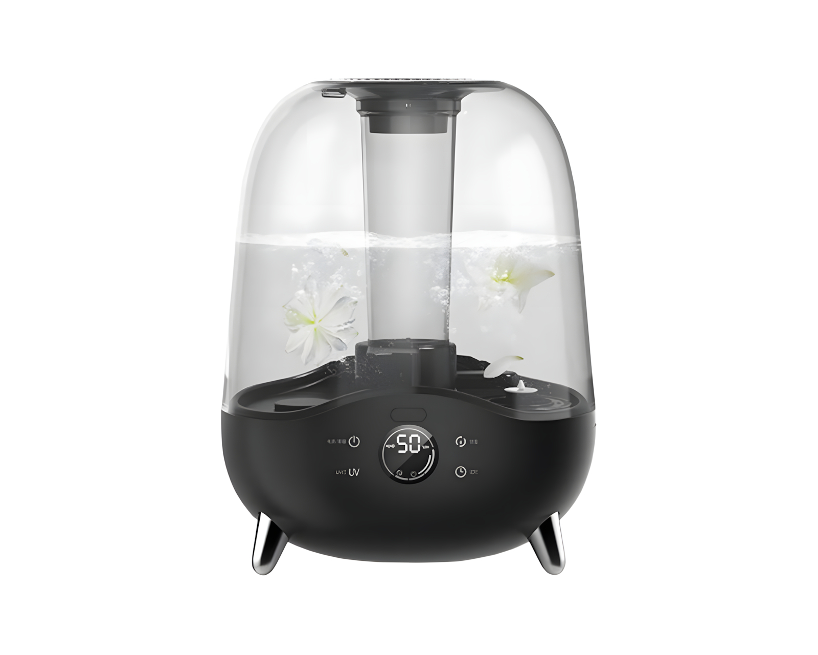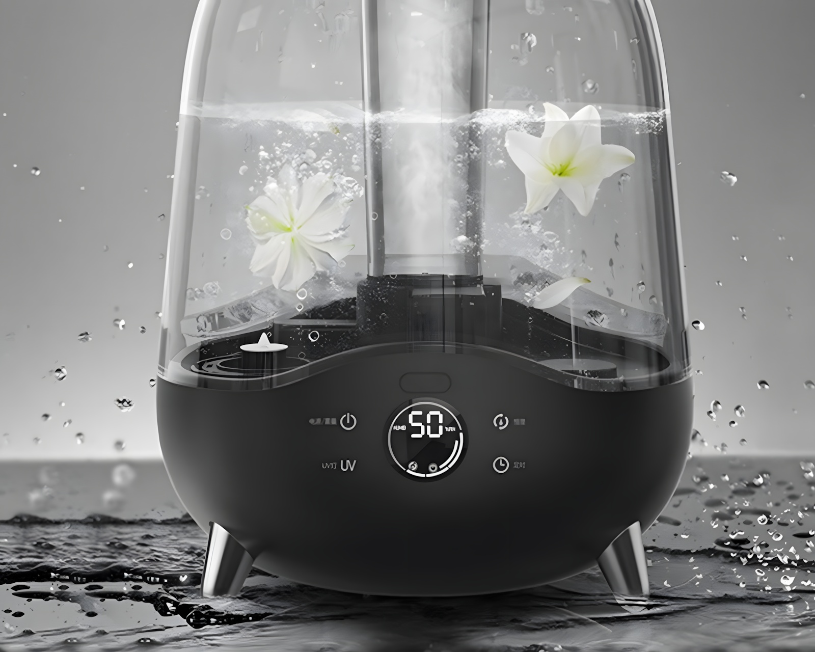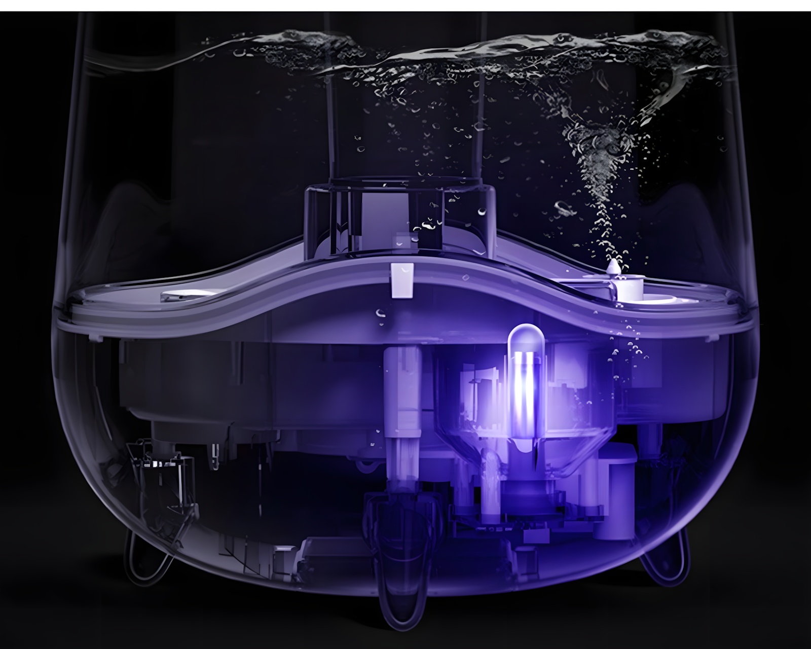 F327W is a humidifier from Deerma that combines a sterilization function with modern design, perfect for creating a healthy indoor environment. With a capacity of 5 liters, it can continuously deliver moisture for up to 14 hours, helping to maintain a pleasant humidity level both during the day and night.The product is equipped with a UV lamp for water sterilization, which ensures 99% elimination of bacteria and other microorganisms. The special 360° water purification system allows for thorough cleaning that provides pure and fresh steam. Its quiet operation (20-40 dB) makes it suitable for use at night. Additionally, the water tank can be personalized with decorations, adding an extra visual dimension.
