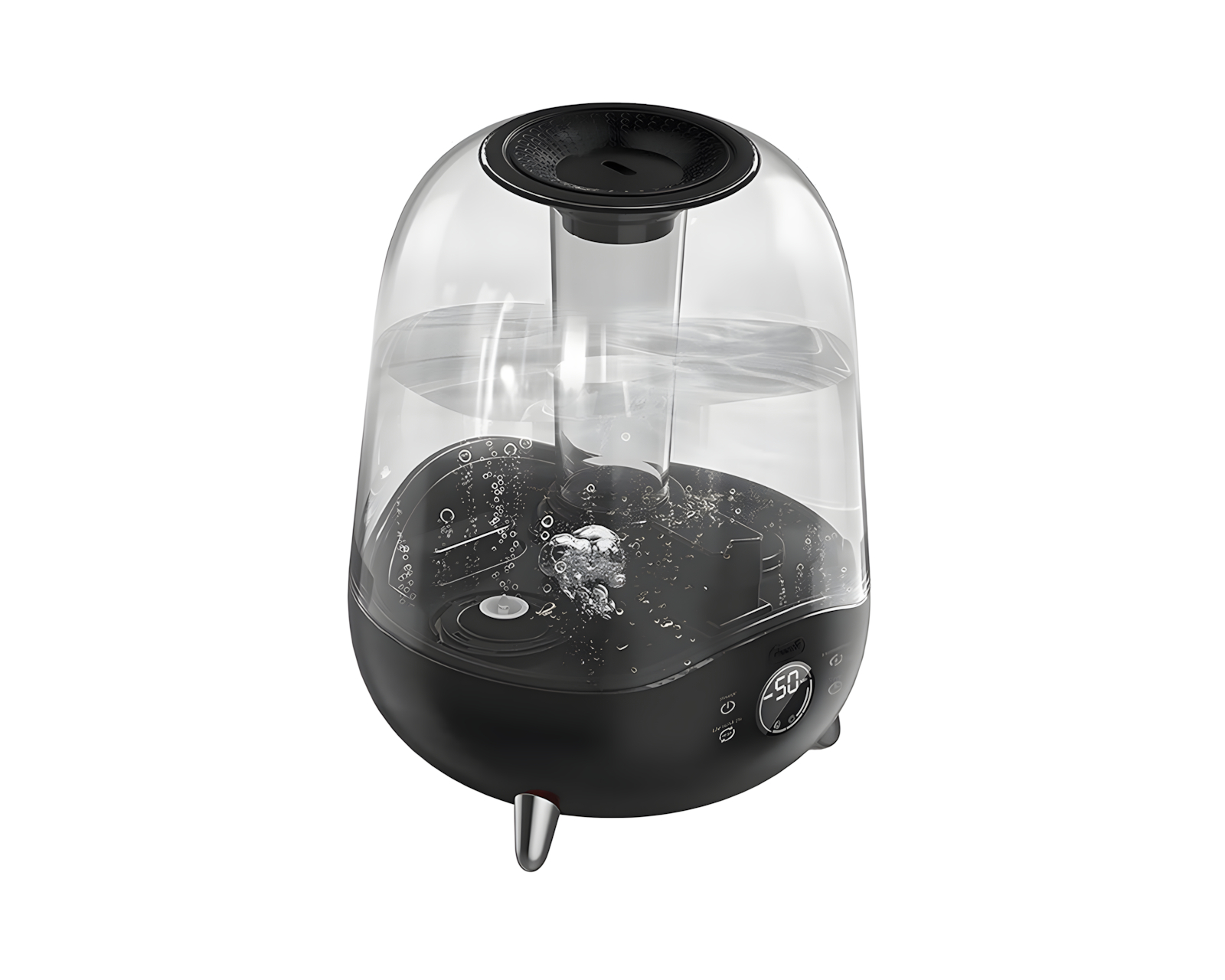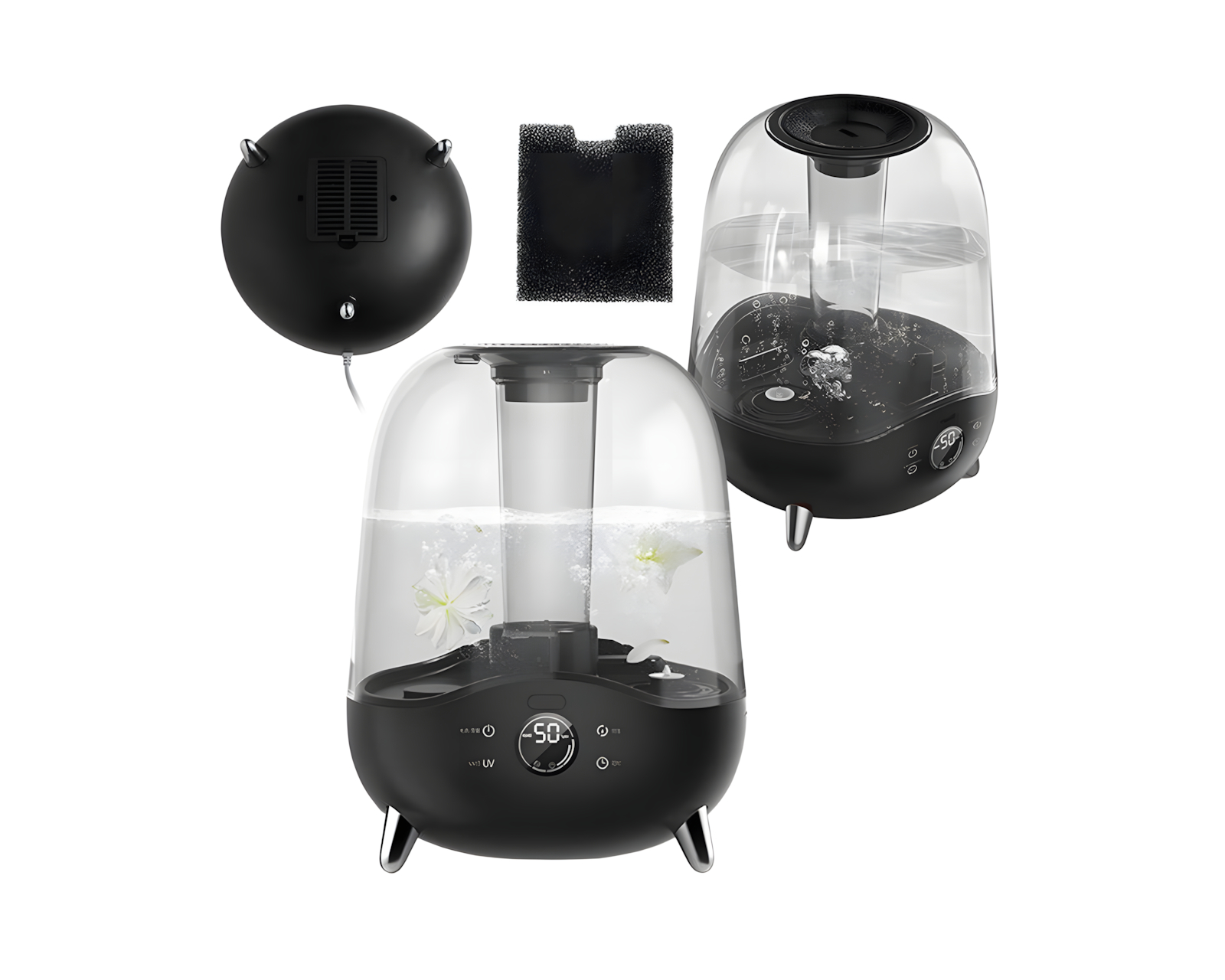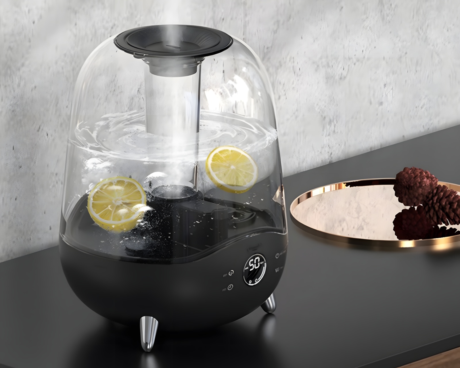 F327W is a humidifier from Deerma that combines a sterilization function with modern design, perfect for creating a healthy indoor environment. With a capacity of 5 liters, it can continuously deliver moisture for up to 14 hours, helping to maintain a pleasant humidity level both during the day and night.The product is equipped with a UV lamp for water sterilization, which ensures 99% elimination of bacteria and other microorganisms. The special 360° water purification system allows for thorough cleaning that provides pure and fresh steam. Its quiet operation (20-40 dB) makes it suitable for use at night. Additionally, the water tank can be personalized with decorations, adding an extra visual dimension.