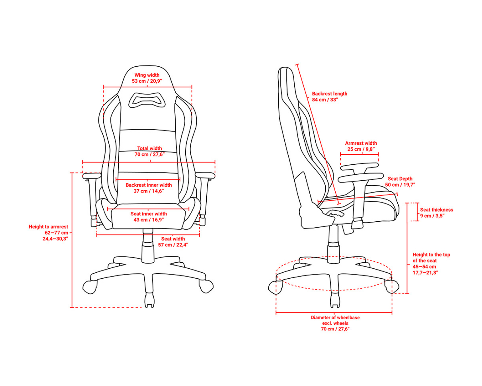 | Armrests | 3-directional |