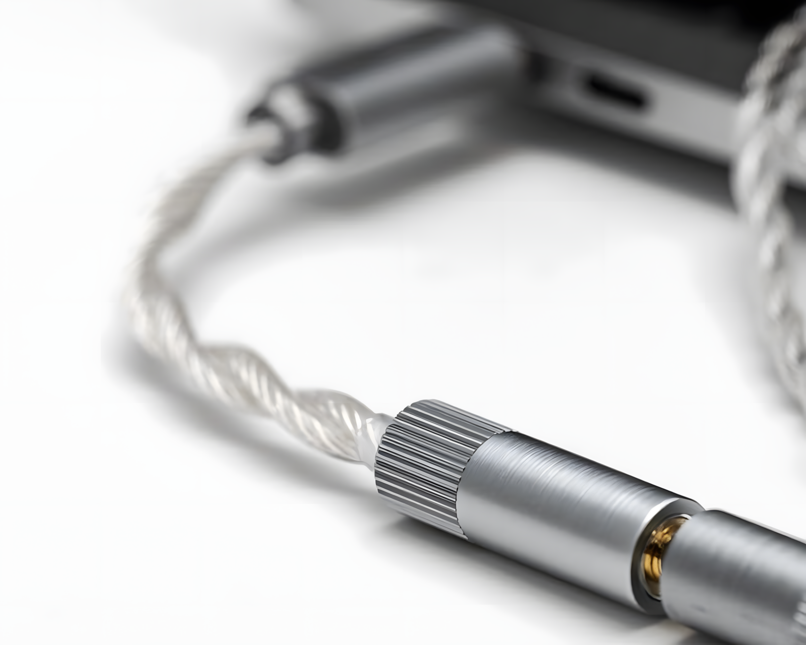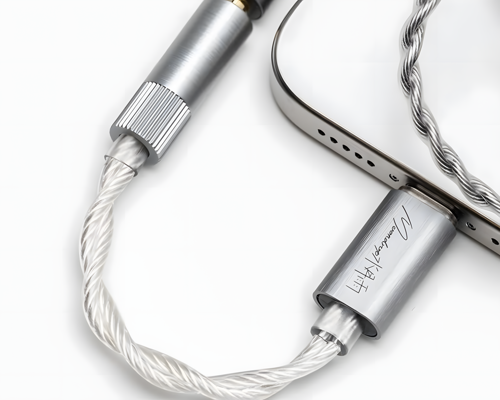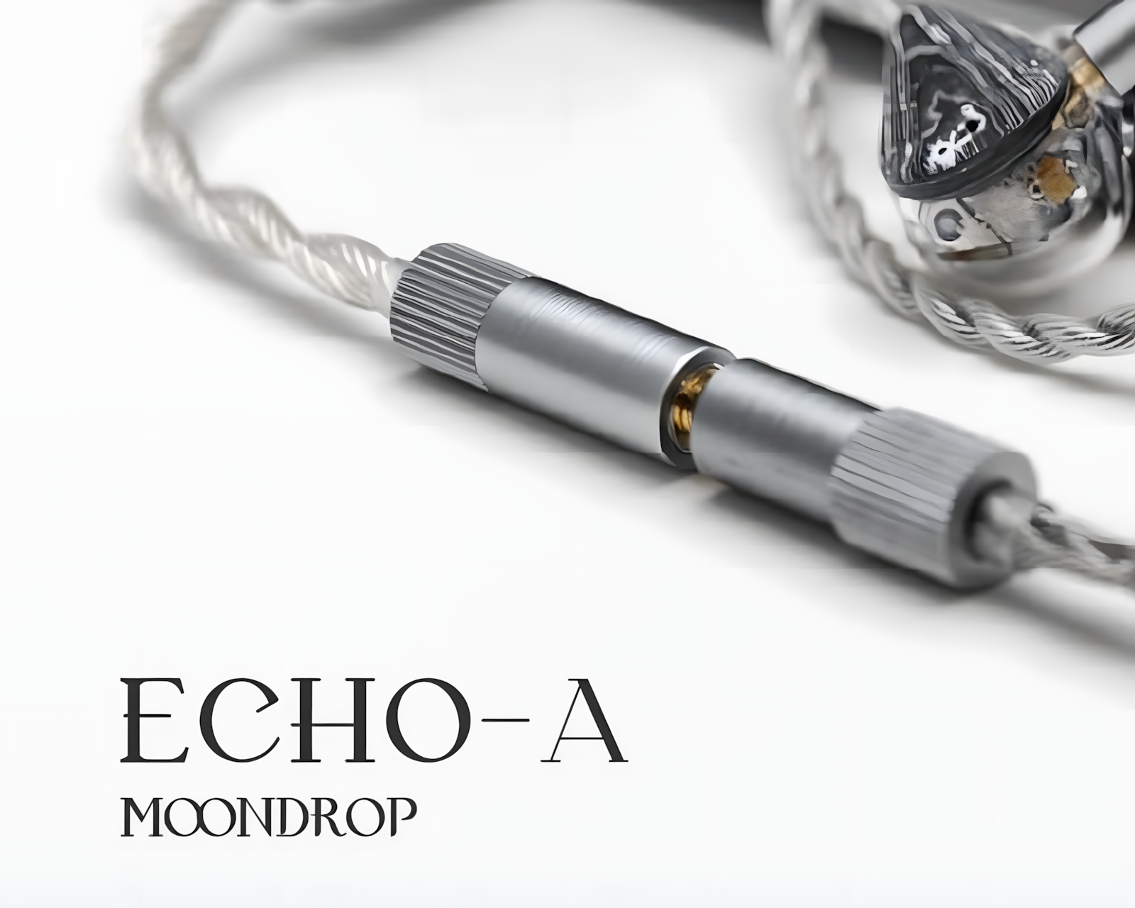 Echo-A USB-C to 3.5 mm Adapter is a portable DAC/AMP from MoonDrop that enables easy connection of headphones via USB-C. It supports Hi-Res Audio with 32-bit/384 kHz decoding, ensuring high sound quality. The adapter is designed to be compatible with a variety of devices, including iPhone 15/16/17, Android phones, PC, Mac, iPad, and PS5.The adapter is constructed with an 8-strand 4N single-crystal silver-plated copper cable to minimize signal loss and maximize conductivity. It features a durable aircraft-grade aluminum casing that protects the internal circuit and ensures stable performance. An integrated headphone amplifier provides sufficient power to drive a wide range of headphones, from sensitive earbuds to more demanding over-ear models. ECHO-A is fully compatible with computers, Android devices, and iOS devices without the need for drivers, offering a high-resolution audio experience with a measured THD+N as low as 0.01% and an SNR of 100 dB.