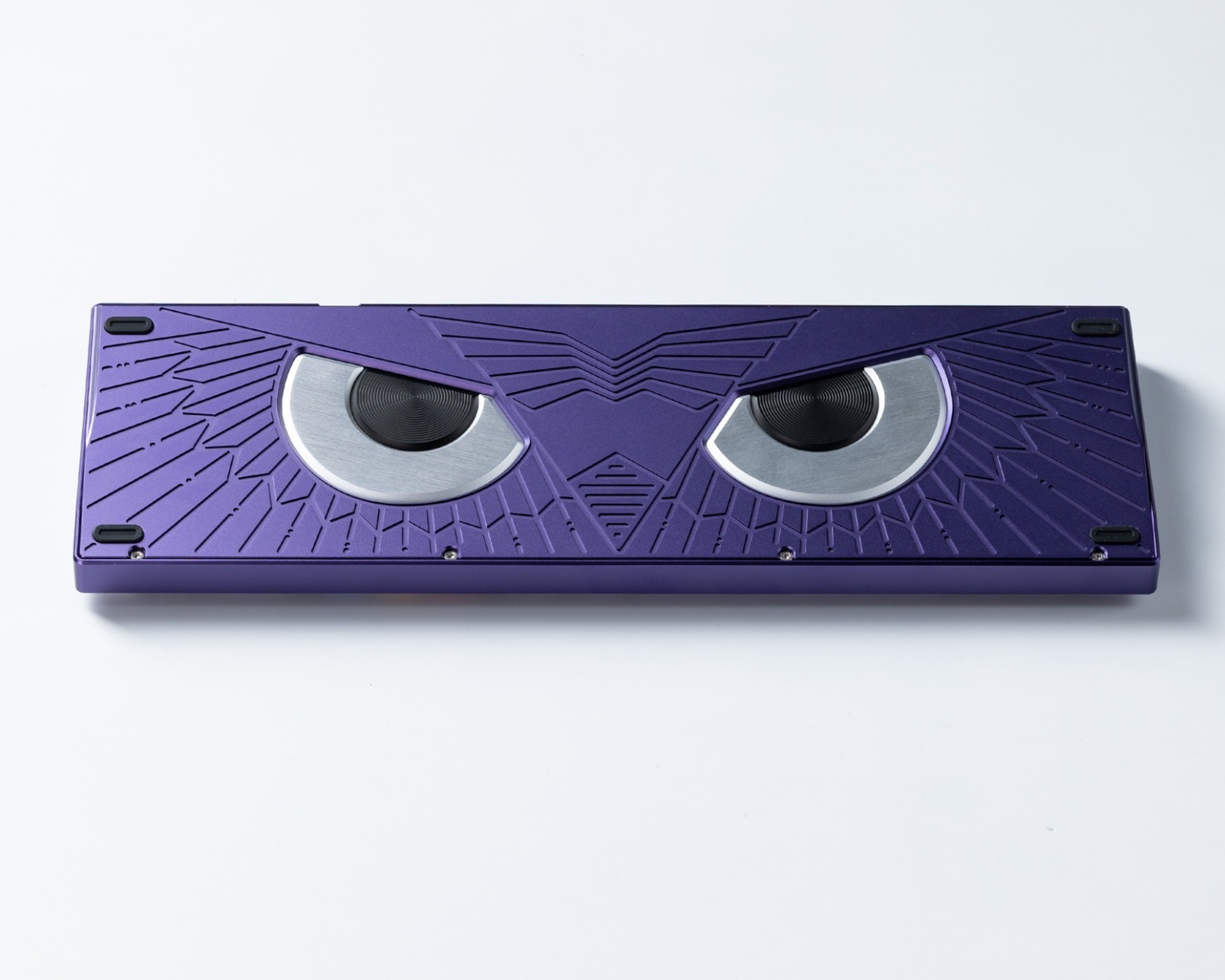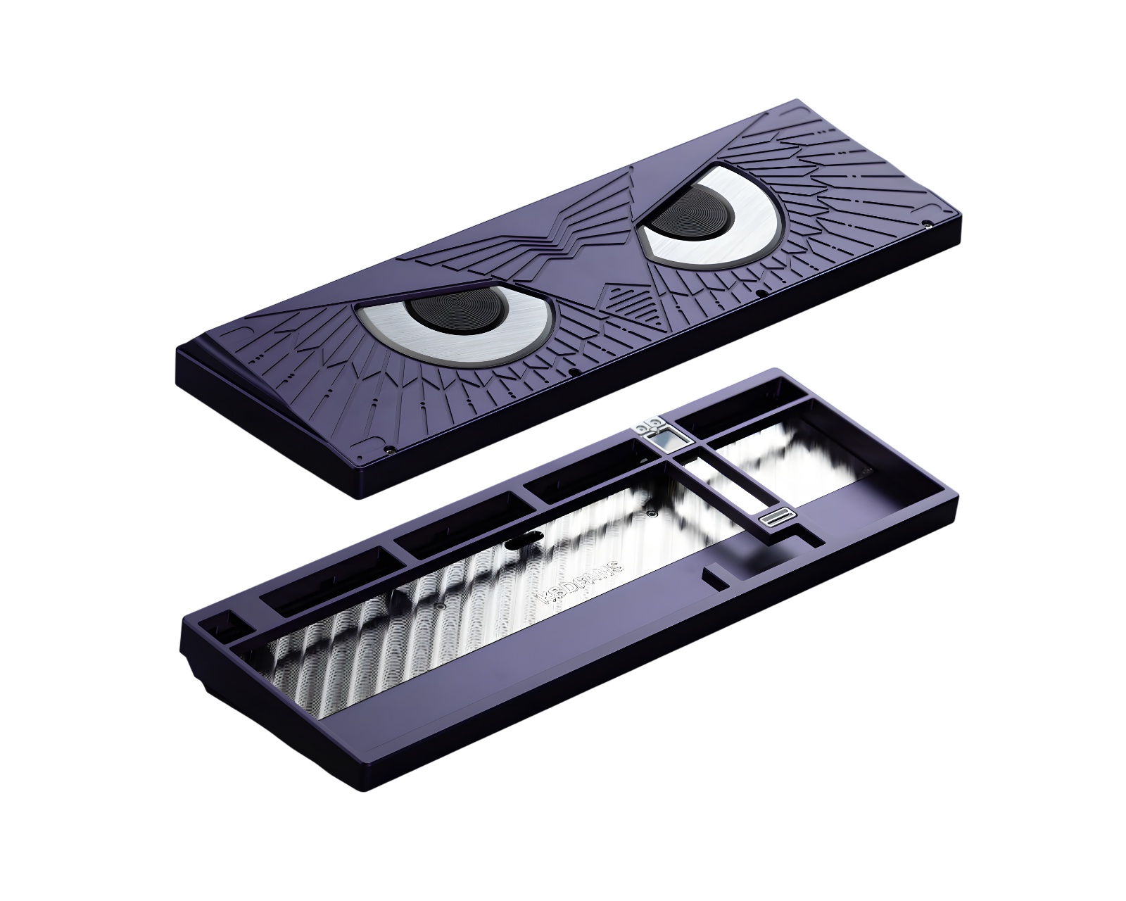 Athena 1800 is a mechanical barebone keyboard from KBDfans that combines technology and design. It features a modern 1800 layout with an LED screen that allows for customizations such as GIF animations. The keyboard is aimed at enthusiasts with higher demands for both typing experience and aesthetics.The keyboard has a solid build quality in anodized aluminum and is offered with various options for inner plates, including stainless steel, brass, and carbon fiber. There are additional mounting options such as top mount and PCB silicone rubber gaskets that provide either a firm and direct typing experience or a more dampened and sound-insulated feel. The design also includes a carefully engraved owl motif on the backplate as well as a light diffuser that creates a subtle backlighting.