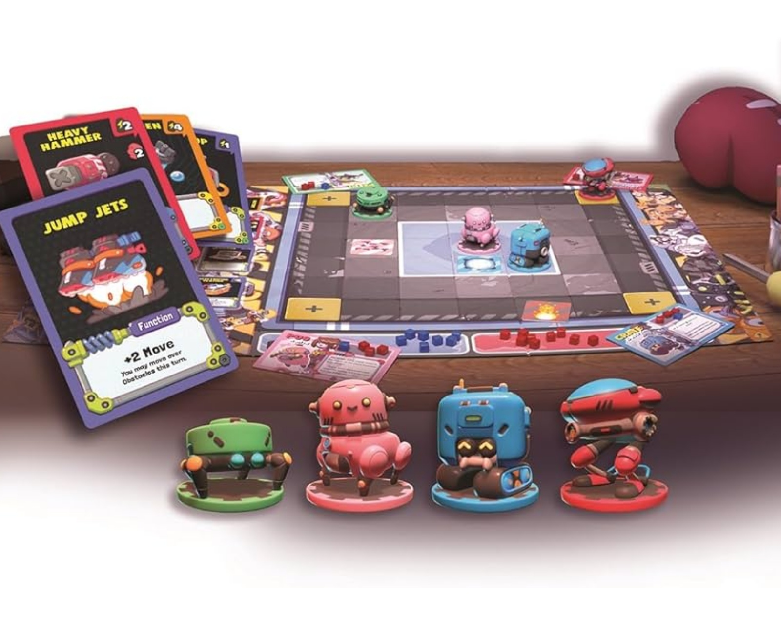 Robot Quest Arena is a board game for 2-4 players that focuses on robot battles and card-building mechanics. The game offers a dynamic gaming experience where players navigate through an arena and strategically use their cards to collect points. The game is designed to be accessible to gamers aged 8 and above and has a playtime of 40-60 minutes.The game includes energy cards that provide the necessary energy to move, activate weapons, and purchase powerful new cards for their deck. The arena is filled with dangers that players must maneuver around, and they shoot at their opponents to collect points. Defeated robots return each round, ensuring that no one is completely out of the game. Alliances can be formed and broken during gameplay, adding an extra dimension of strategy and interaction.
