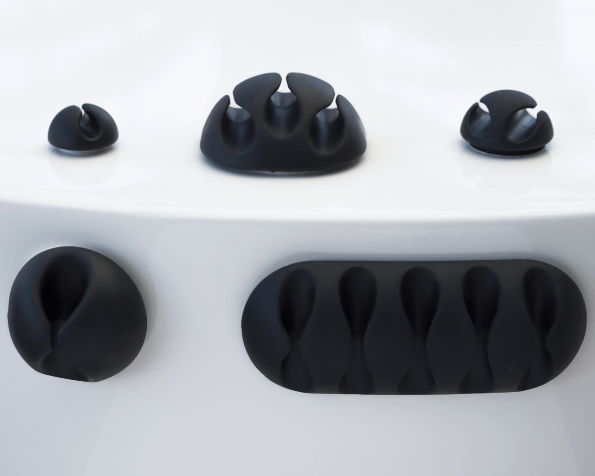 With durable cable holder, 4 pieces with a slot, two with two slits, two with three slits and two with four slots supporting a wide range of unit cables, and easy to remove thanks to 3M adhesive surface, that does not damage the substrate.