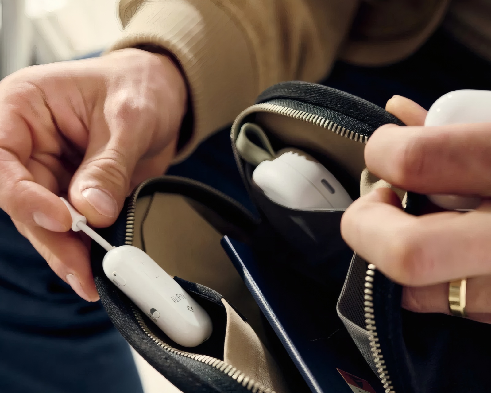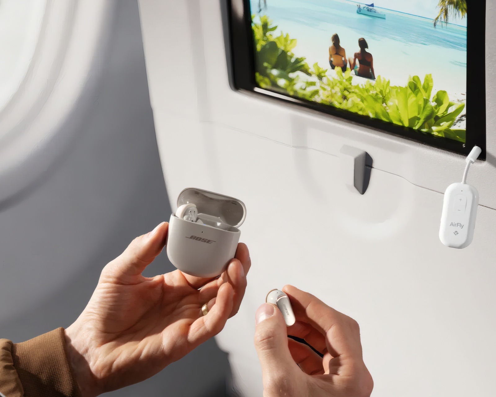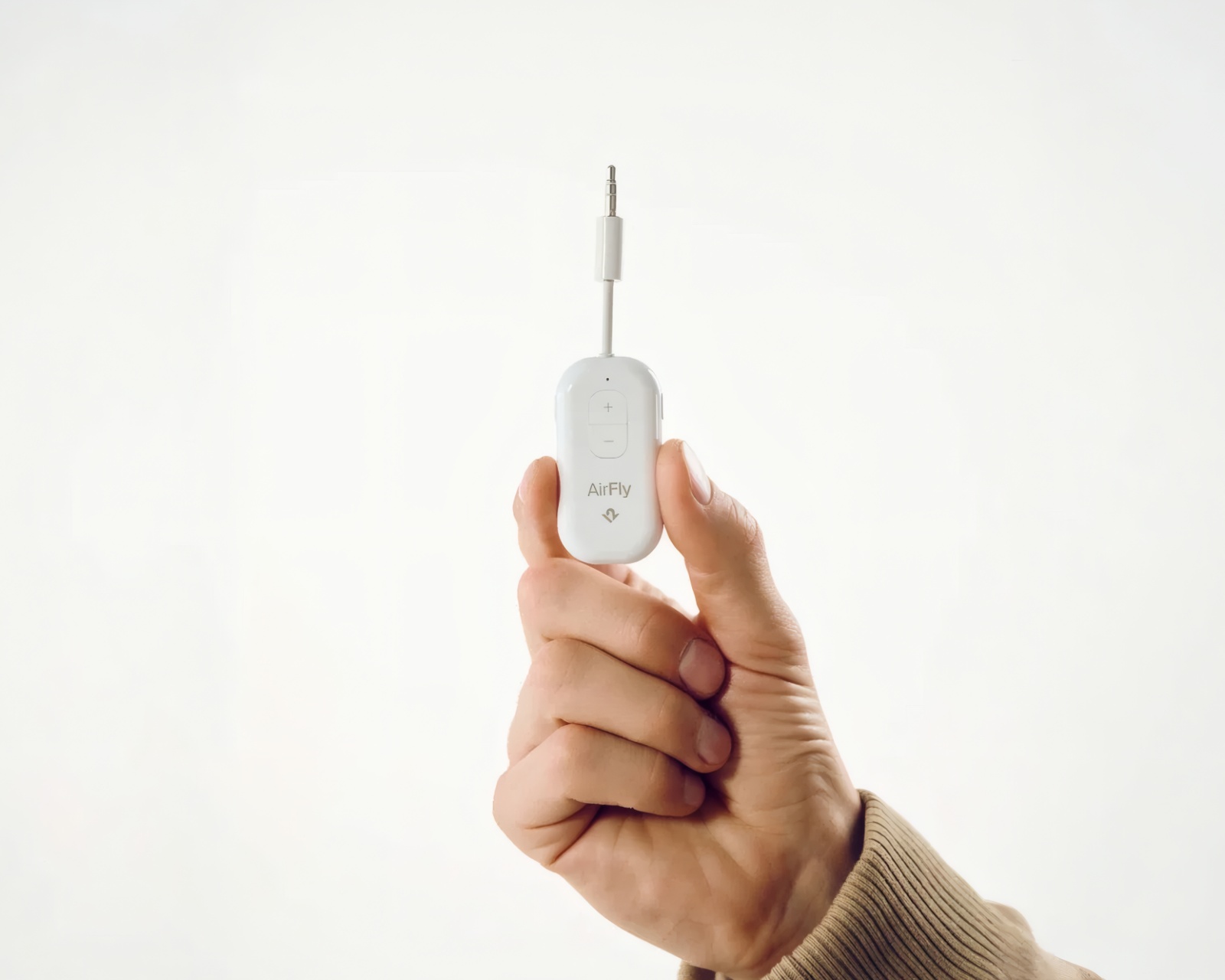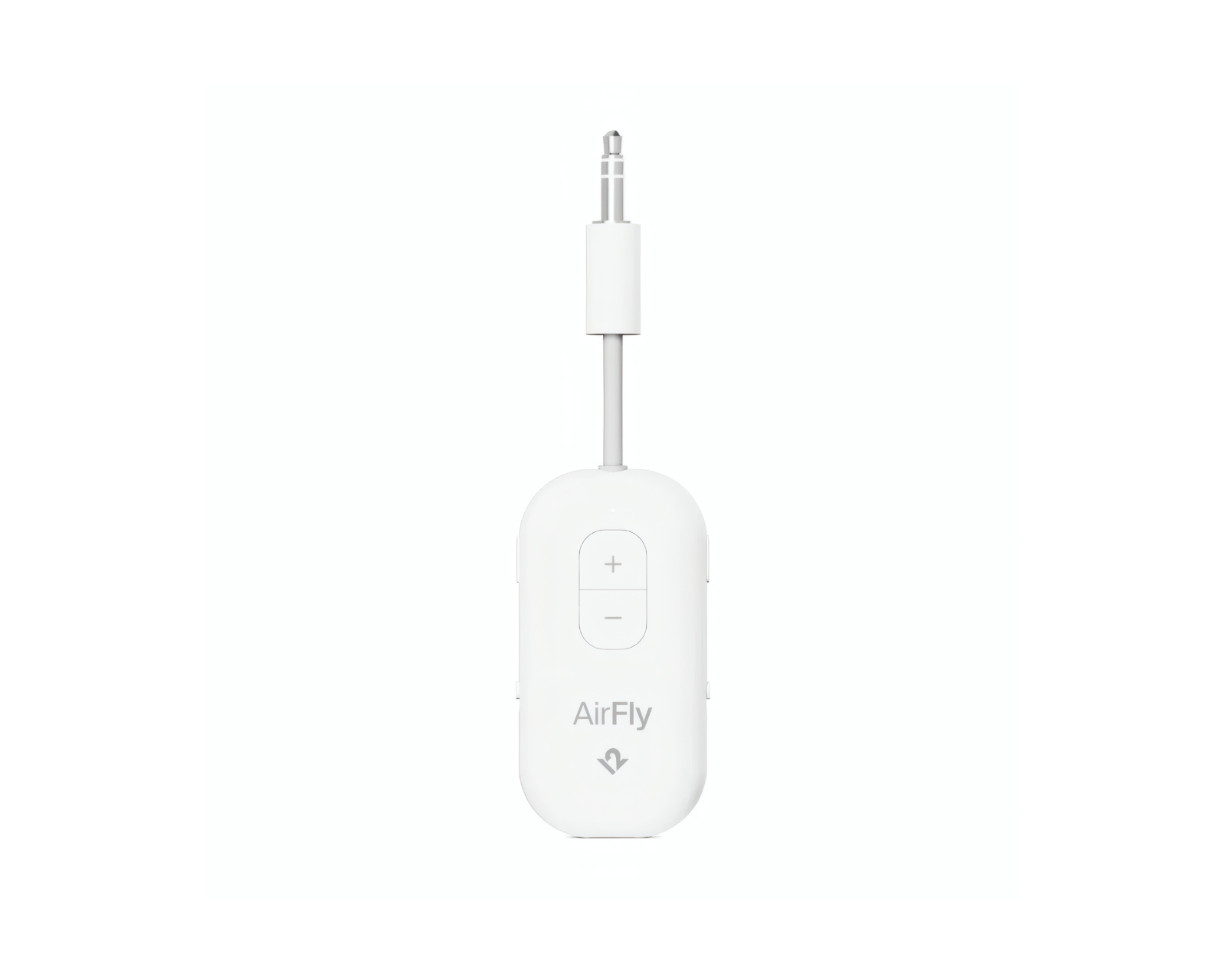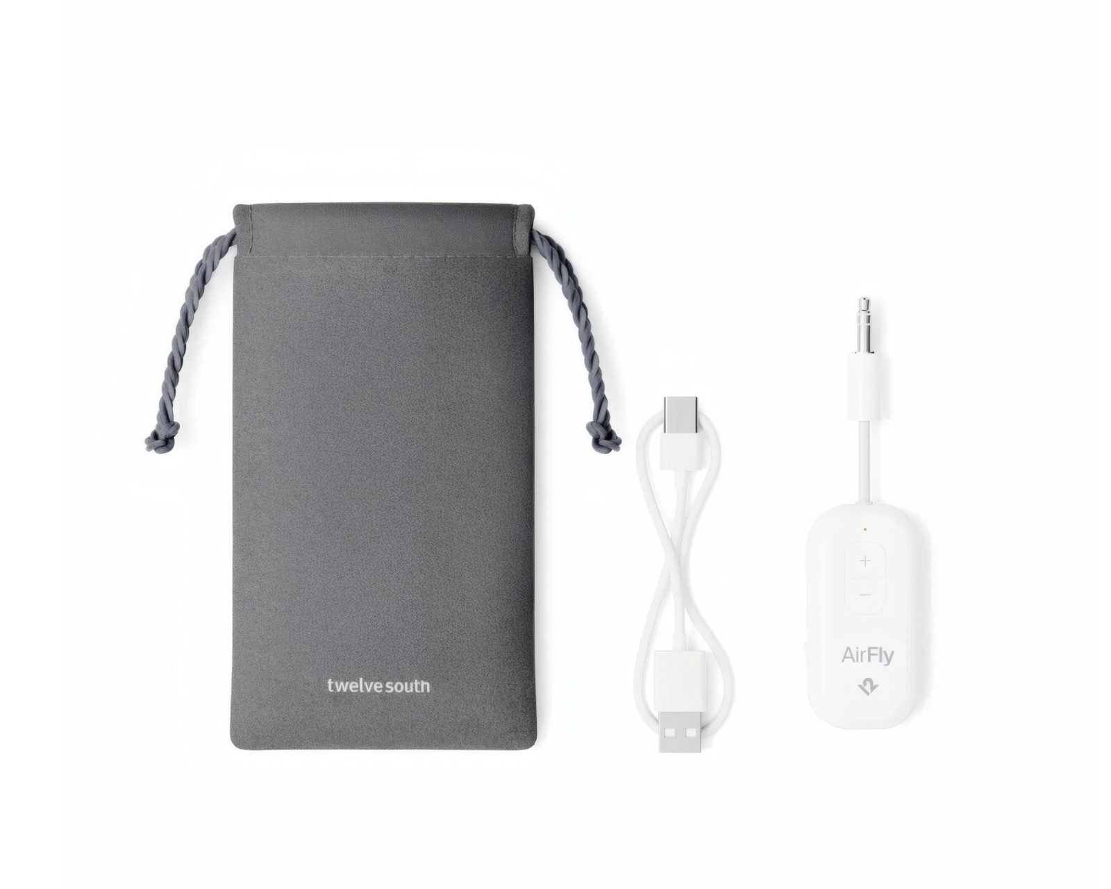 AirFly Pro 2 is a wireless headphone adapter from Twelve South. This device allows you to connect AirPods or other Bluetooth headphones to any device with a headphone jack, such as airplane systems, gym equipment, and gaming consoles. AirFly Pro 2 can last over 25 hours on a single charge and charges via USB-C.AirFly Pro 2 is compact and lightweight, making it easy to carry and use while traveling. It has two buttons to pair up to two wireless headphones to a single device, without the need for a splitter cable. The device also features intuitive volume and mute controls, as well as a clearly visible battery indicator. The deluxe version includes an international airplane adapter and a premium travel pouch for optimal use while traveling.