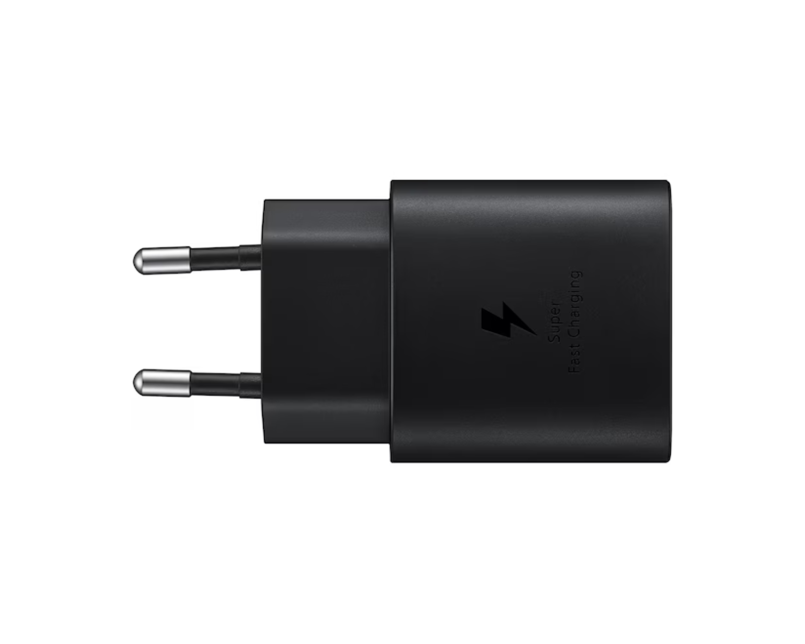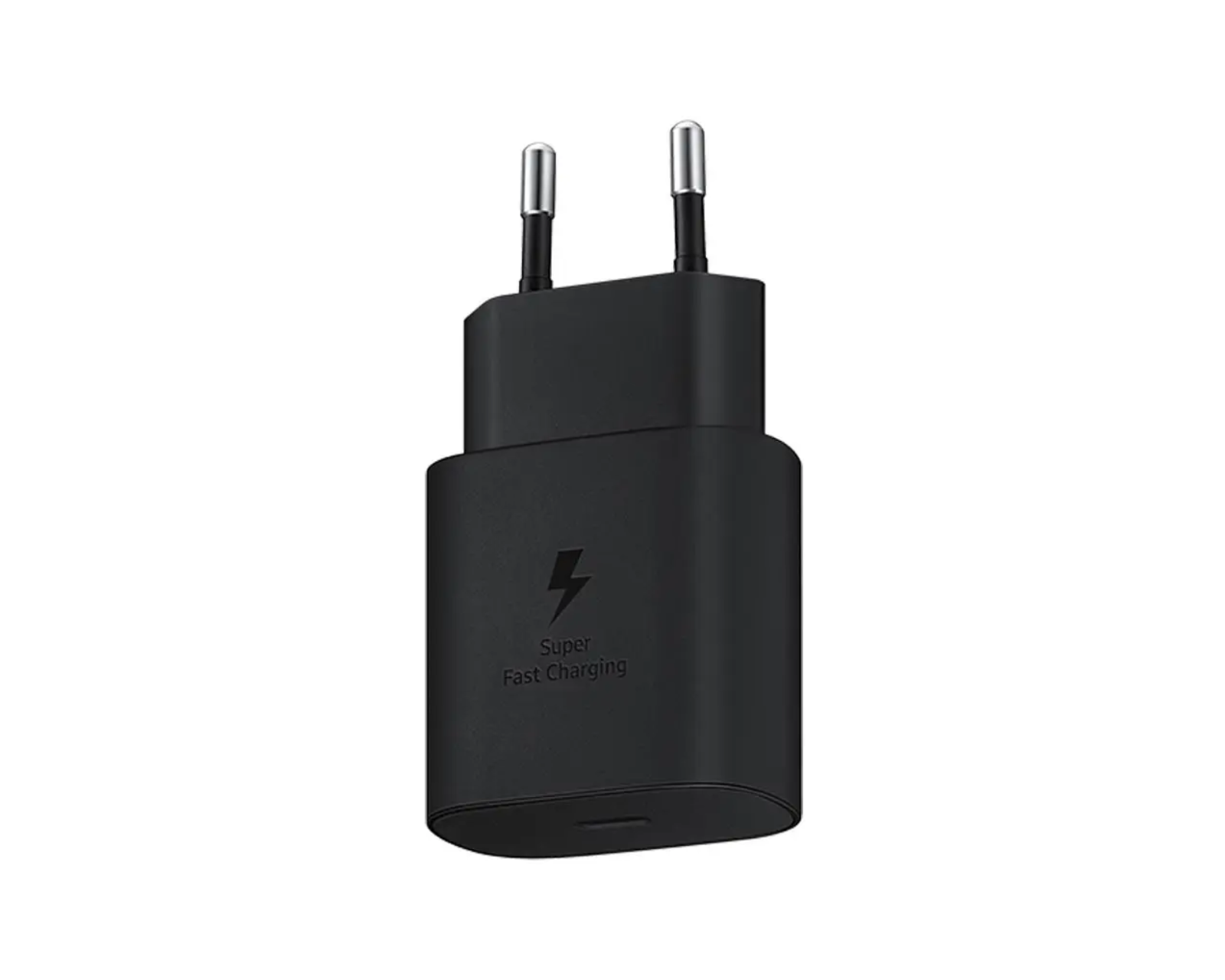 The USB-C Fast Charger 25W is a wall charger from Samsung that offers fast charging with USB-C PD 3.0 PPS for compatible devices. It can deliver up to 25W of effective power, which allows compatible devices to charge significantly faster. With this charger, you can be sure that your device will regain power quickly when it starts to discharge. The wall charger is designed with high-quality components and follows the USB IF standard for Power Delivery 3.0.It is optimized to deliver fast charging to the Galaxy S20 and Galaxy Note 20, among others, enabling 50% charge in 30 minutes according to tests conducted by Samsung. The charger's versatility means it works with a wide range of devices, regardless of operating system. It doesn't matter if you're using a smartphone, tablet, headphones or laptop; fast charging is available for all compatible devices.