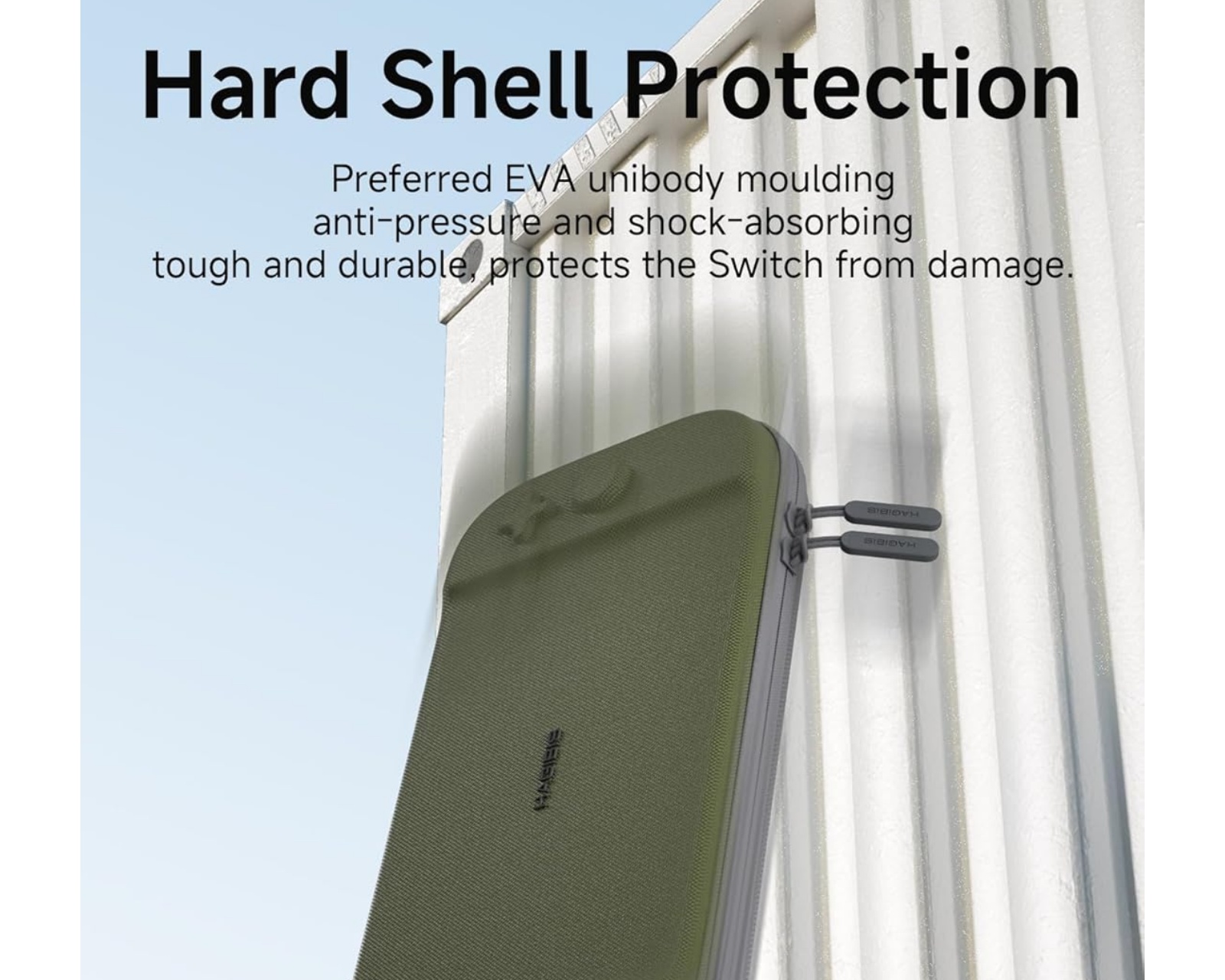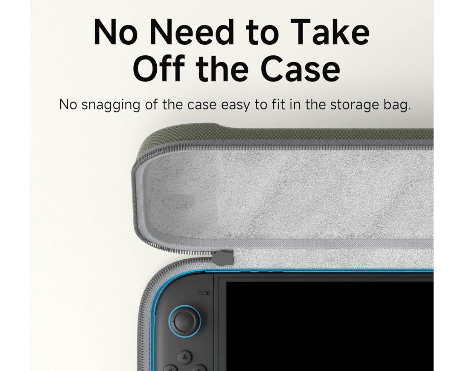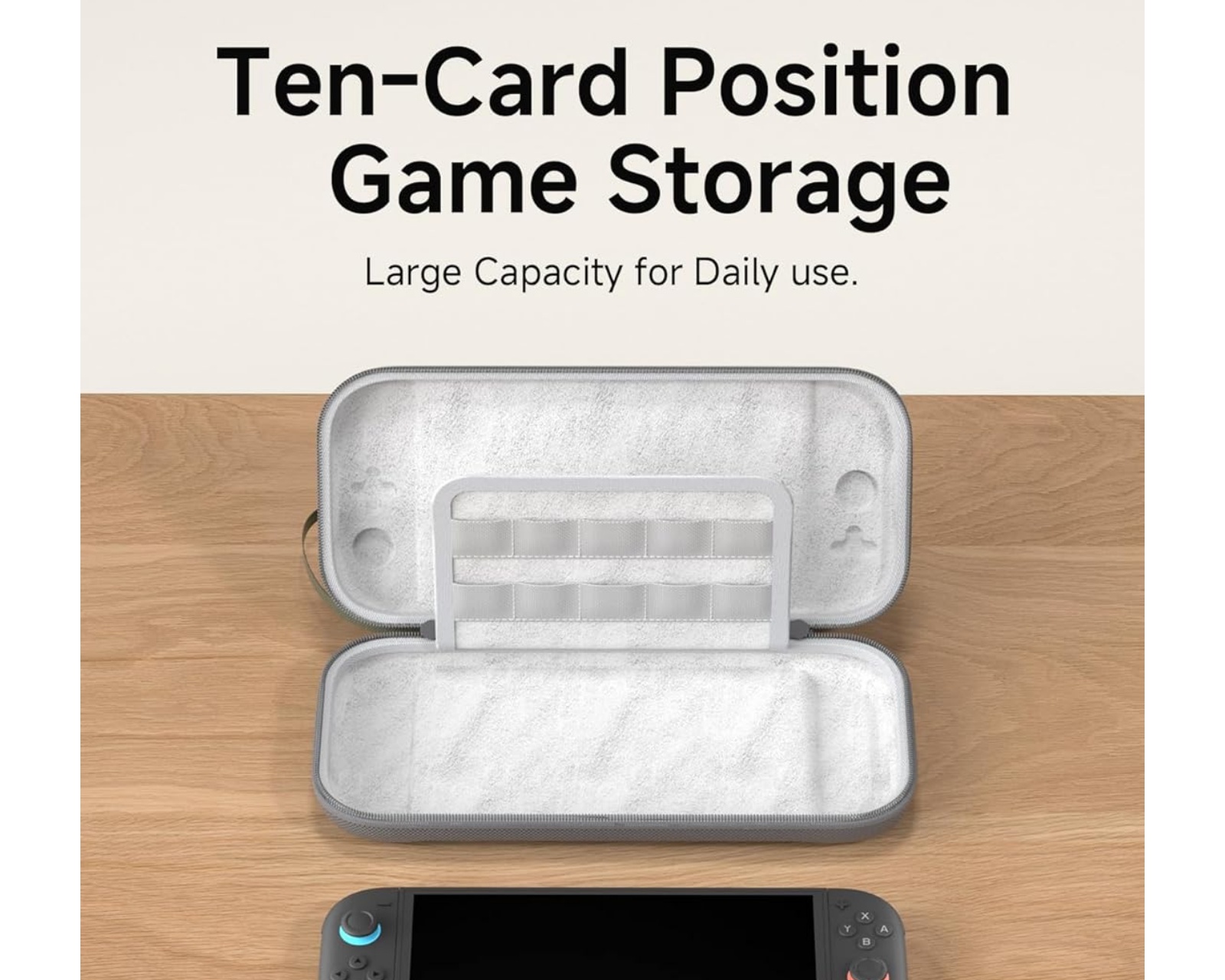 Switch 2 Storage Case BG10 is a portable bag from Hagibis designed to protect the Nintendo Switch 2. The case is made from durable 900D Oxford fabric, providing good protection against damage. An important feature is that the case holds game cartridges and protects the console from scratches and bumps. It has space for up to ten game cartridges, making it easy for gamers to switch games on the go. The case is optimized for both travel and home use.The bag's construction results in an ultra-thin and lightweight design, with an ergonomic wrist strap for easy portability. Inside, there is a soft and gentle lining that protects the screen and console from scratches. The case features a hard EVA shell that provides extra reinforcement against falls and impacts. The unique YKK zipper ensures that small items do not fall out and also prevents damage to the Switch 2. This case allows the use of the console cover without needing to be removed to fit in the bag.