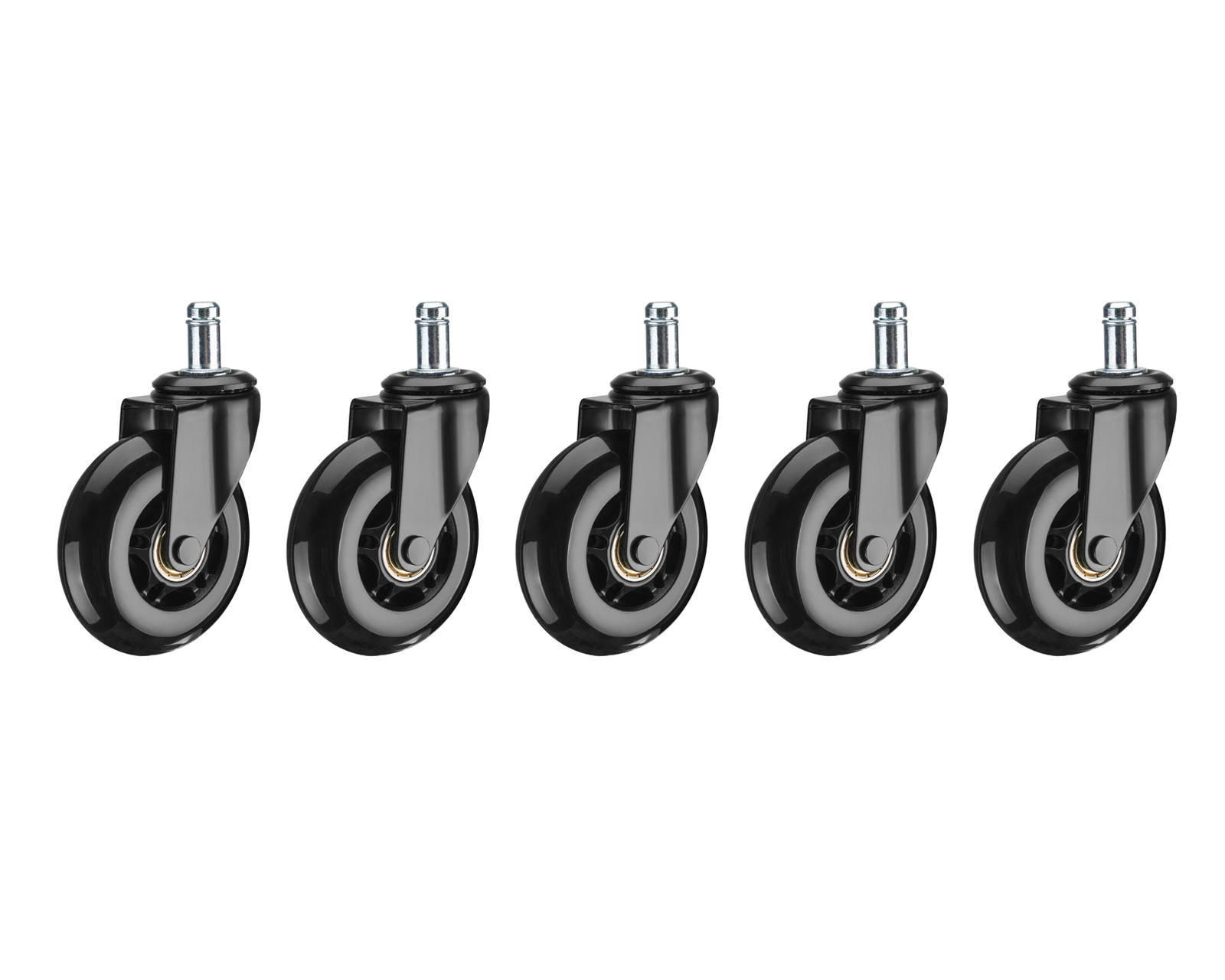 MaxMount chair casters are designed to replace standard casters on office and gaming chairs. These casters allow for smooth rolling and are easy to install on most chairs thanks to the universal mounting stud. The chair casters have a diameter of 76 mm and are made of durable PU rubber, making them suitable for use on both wooden floors and carpets.The chair casters are based on a robust construction with centered steel components for maximum durability. The special rubber compound ensures quiet and efficient rolling without damaging floor surfaces. The universal design concept makes them compatible with many types of chairs, which simplifies changing wheels. The optimal diameter contributes to stability and a good grip on different surfaces. With an 11 mm mounting pin, these casters are a practical solution for those looking for high functionality in their office or playroom.