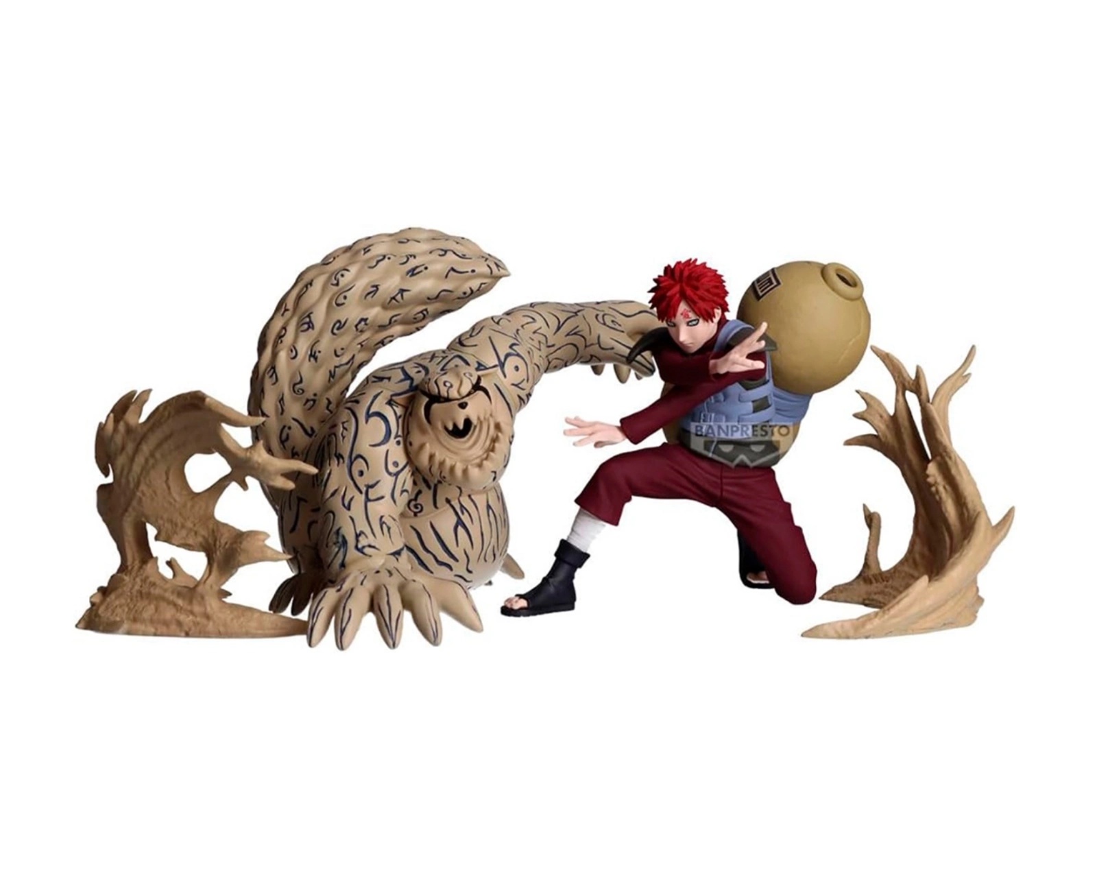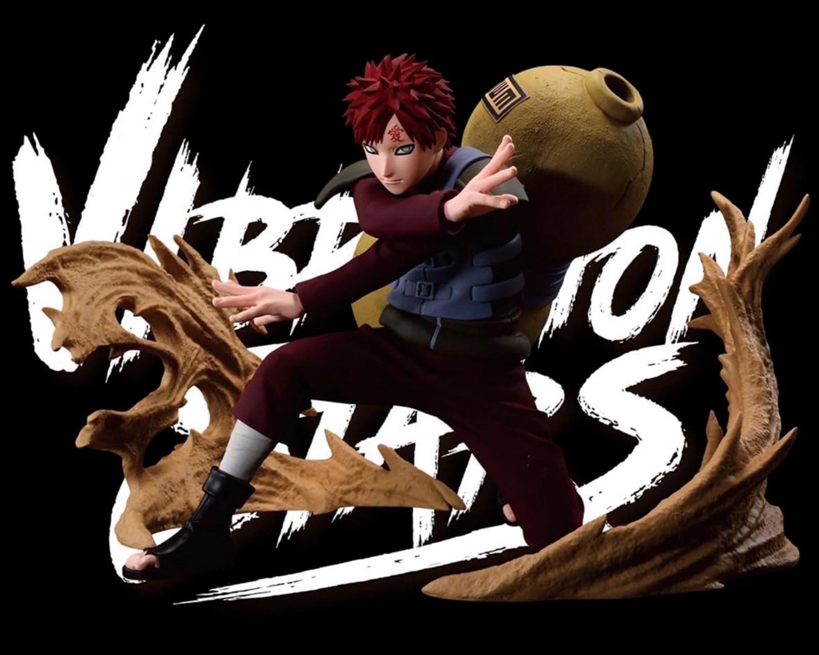 A collectible figure from Bandai, inspired by the popular anime series Naruto: Shippuden. The figure depicts Kazekage Gaara, portrayed in a battle stance with his signature sandjutsu ready for use. With a height of 17.01 cm, this detailed figure is made of PVC and ABS plastic, providing a sturdy construction and an impressive appearance in any collection.The carefully designed figure captures Gaara in a dynamic pose, bringing the scene from the anime to life. The Vibration Stars Plus series is known for its details, and this figure is no exception. It is not articulated, which allows for a continuous design focused on reproducing the character's power and style. The dimensions of 20 x 10 x 15 cm and a weight of 0.19 kg make it easy to place among other collectibles without taking up too much space. The colorful design appeals to both collectors and fans of the series.