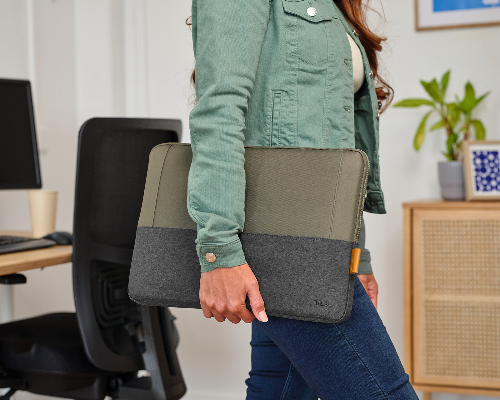 Trust Lisboa 16" Laptop Sleeve - the perfect companion for your valuable device. This elegant and thin laptop sleeve combines style, durability, and environmental awareness, giving you a truly exceptional accessory.What sets Lisboa apart from other laptop cases is its commitment to sustainability. Made from fabric from 4 recycled PET bottles, the case not only protects your laptop but also helps reduce waste and protect the environment. With Lisboa, you can transport your laptop with confidence and know that you are making a positive contribution.