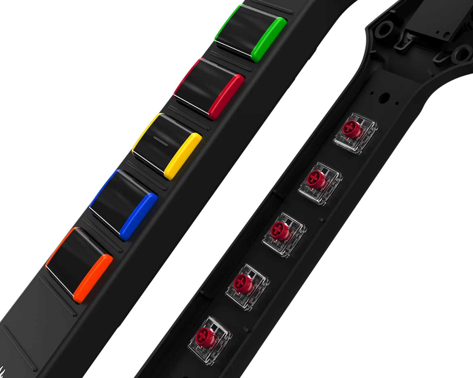 - Mechanical frets and hall effect strum bar