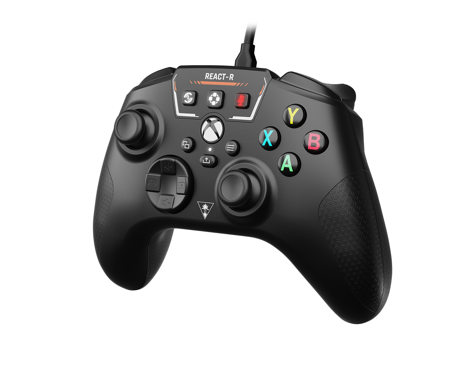Turtle Beach REACT-R is a wired controller for Xbox Series X, Xbox Series S, Xbox One, and PC. It features an ergonomic design with textured grips and triggers, providing a comfortable gaming experience during long gaming sessions. With a weight of 271 g (without cable) and an included 2.5 m USB-C cable, it gives the player the freedom to sit further away from the screen.The controller has advanced audio features, including one-touch access to Superhuman Hearing, which amplifies the sound of quiet footsteps and weapon reloads for a tactical advantage. With two mappable quick-action buttons, the user can customize the controls for faster responses. The vibrations in the grips provide a more immersive gaming experience. A 3.5 mm audio port allows for easy connection of compatible headsets, enhancing audio quality during gameplay. The REACT-R is officially licensed by Microsoft, ensuring compatibility and reliability.