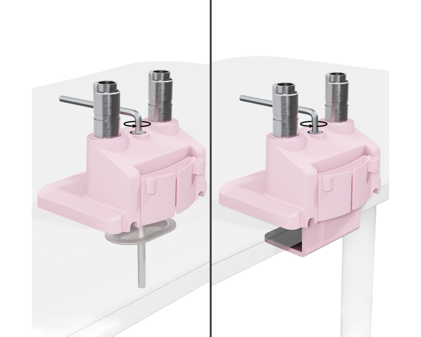 The stand is made of steel, providing high build quality and stability. Installation is simple via clamps that attach to the desk, and its swivel and tilt design allows for adjustment from +90° to -90° in swing range and a tilt of +45° to -45°. The stand also has cable management, making it easier to achieve a tidy and organized installation, without visible cables. 360° rotation allows you to position the monitors in a way that best suits your needs.