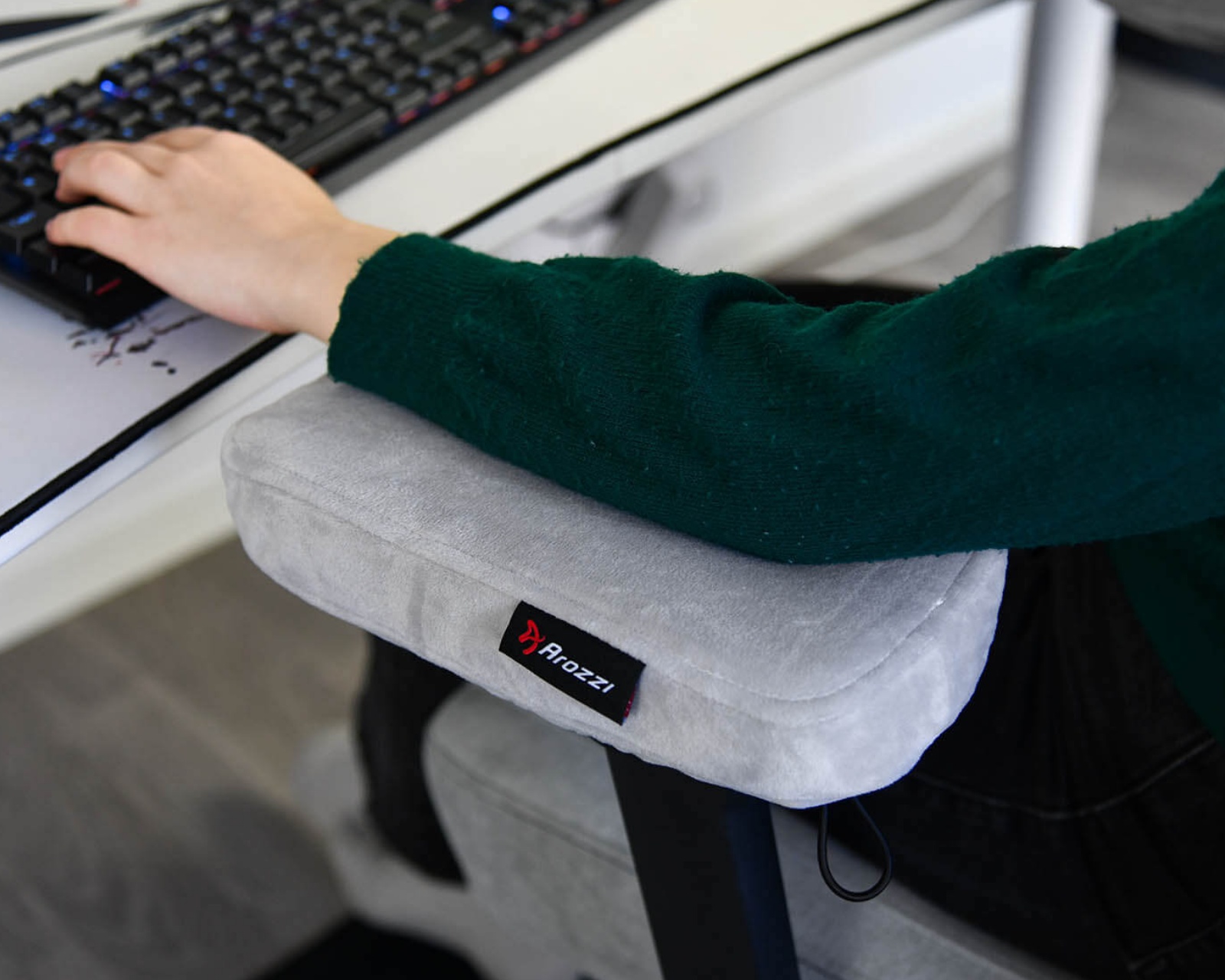 DEMO: Returns and test samples. Good condition.Memory Foam Armrest Pads are an accessory from Arozzi that offers increased comfort for gamers during longer sessions. These pads are specifically designed to enhance support for the arms and reduce the risk of fatigue, which is important for intense gaming experiences. The color is gray, providing a sleek and neutral aesthetic that fits into various gaming setups and environments.