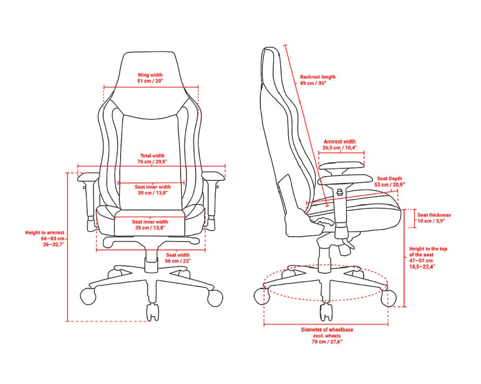 Armrests | 3-directional |