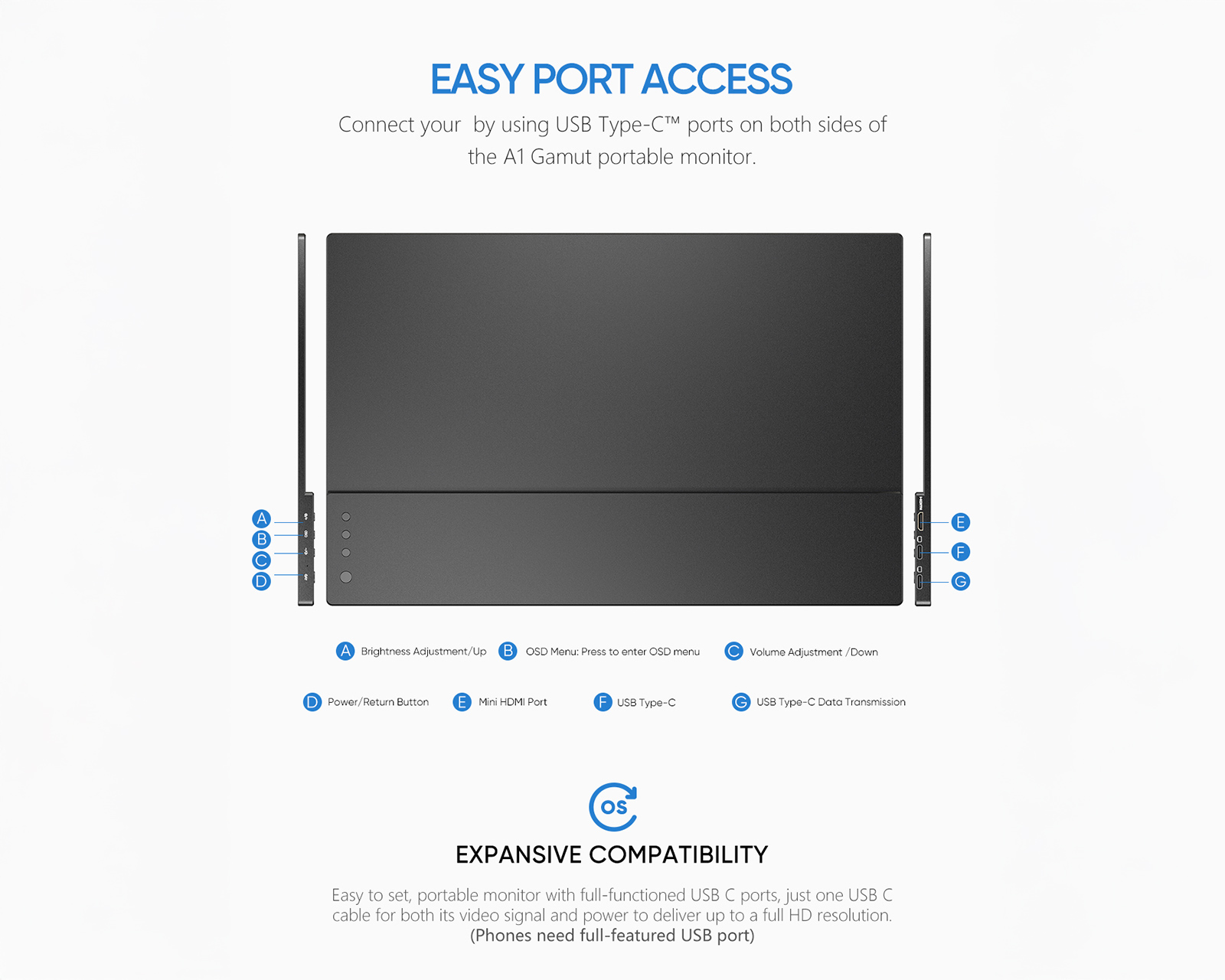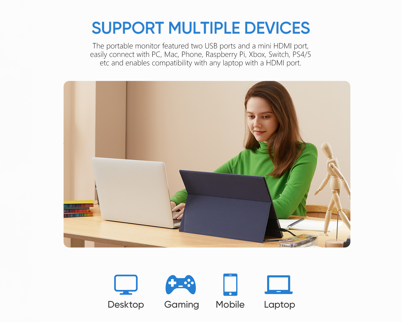 - Connection via USB-C & Mini-HDMI