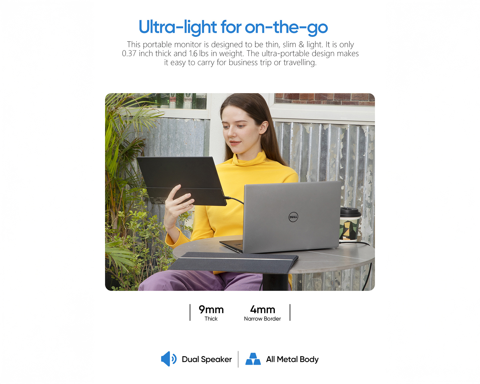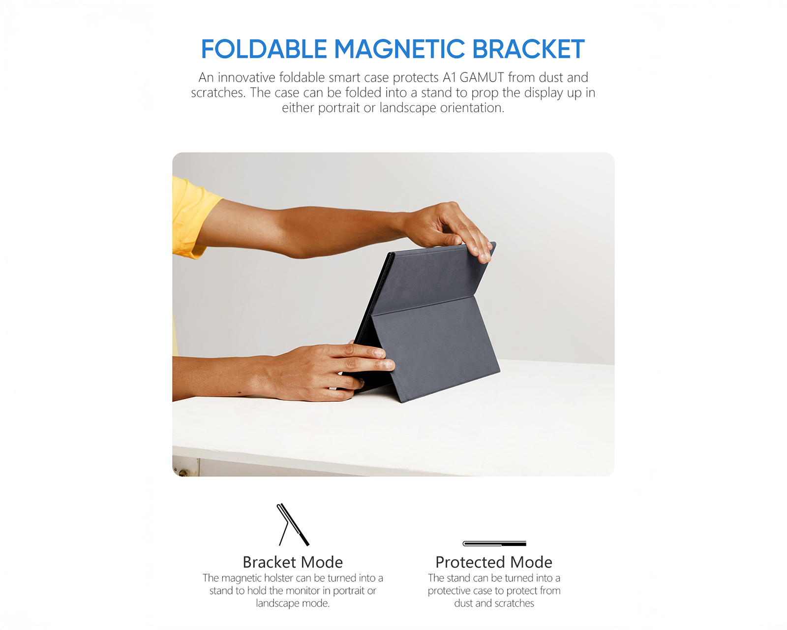 The device has an ultra-thin profile and robust build quality in CNC-anodized aluminum, making it both durable and easy to carry on the go. For maximum flexibility, it easily connects via USB-C or Mini-HDMI to laptops, Macs, gaming consoles (PS5/Xbox/Switch), and select smartphones. Sound is delivered through dual built-in speakers, and there is also a 3.5mm jack for headphones. The included magnetic smart cover protects the screen during transport and also functions as an adjustable stand for optimal viewing angle.
