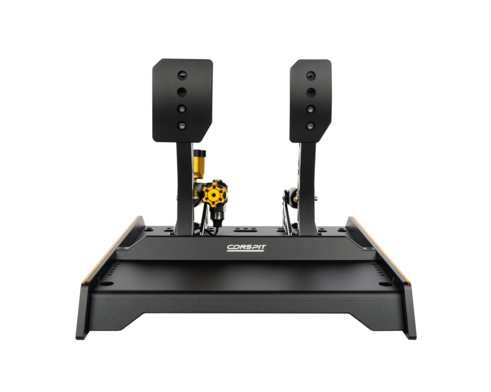 The model features dual hydraulic cylinders to enable this and offers tool-free adjustability to fine-tune the feel of both gas and brake. Each pedal has four levels of power adjustments, as well as independent settings for movement and preload. The 6061-T6 aluminum construction provides durability, while the anodized surface protects against wear. An integrated M-DVF vibration module conveys surfaces and engine sounds, creating a more tactile experience while playing. Connect via USB or CONSPIT CAN to use with simulation programs.