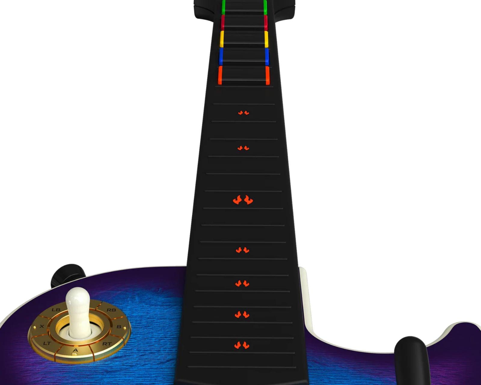Built with mechanical frets for high precision and responsiveness, the advanced hall-effect strum bar ensures a long lifespan with customizable action points. The modular design allows the user to swap out the neck for a personalized gaming experience. With two analog sticks and an ergonomic D-pad for easy navigation in game menus, handling the device is intuitive. Additionally, it offers haptic feedback for a more tactile gaming experience, enhancing the feeling of playing.