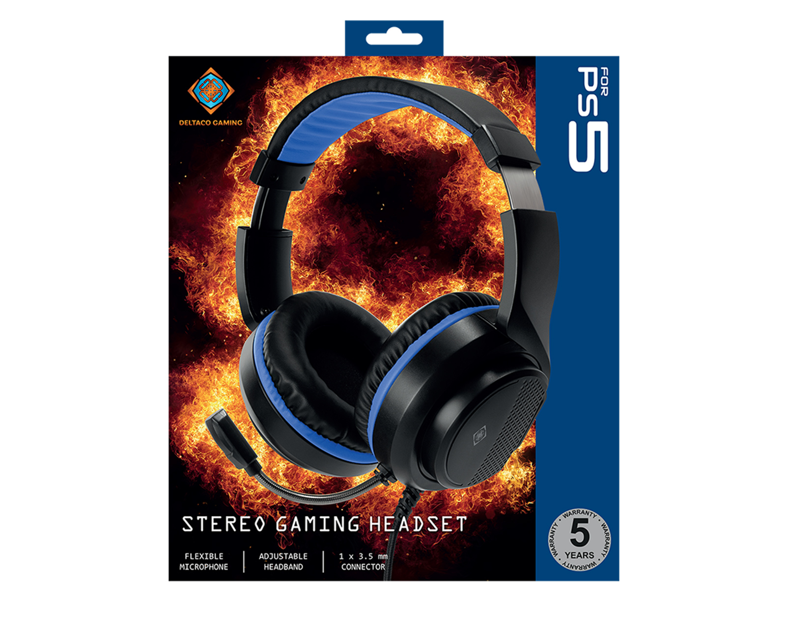 DELTACO GAMING headset for Sony Playstation 5, 2m cable, 40mm elementsGaming headset designed for optimal compatibility with Sony Playstation 5, take your console gaming to new heights with great sound during gaming! Hear your enemies before they hear you, enjoy the music in the game like never before with the 40mm elements in this headset.