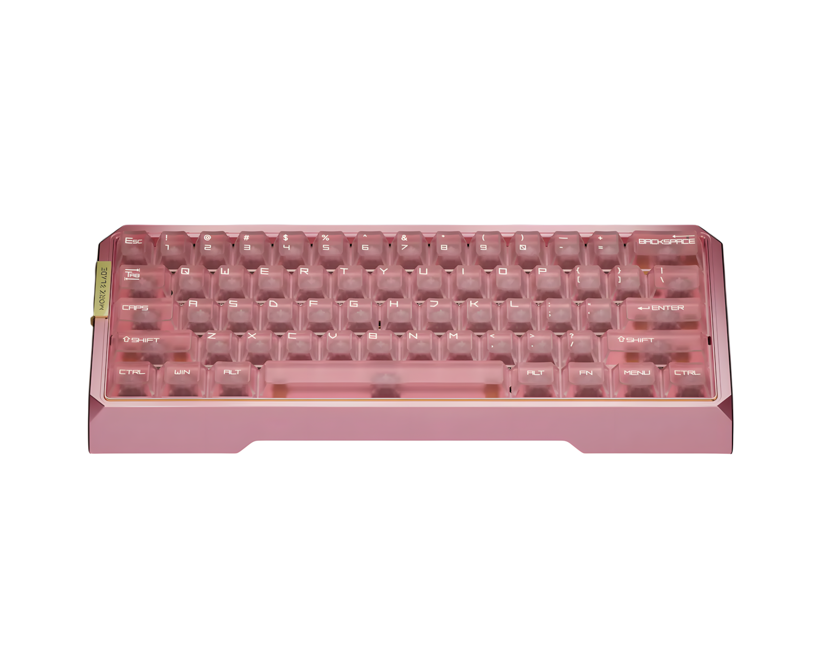 DEMO: Returns and test sample. Good condition.GATERON x MORKBLADE MK60 is a magnetic keyboard from Gateron that offers a combination of high performance and design. This limited edition features a CNC-machined pink aluminum construction that provides both durability and aesthetics. It is equipped with a response time of 0.1 ms, made possible by dedicated scanning chips, ensuring that every keystroke is registered accurately. RGB lighting flows through the transparent switches, creating an impressive light display.