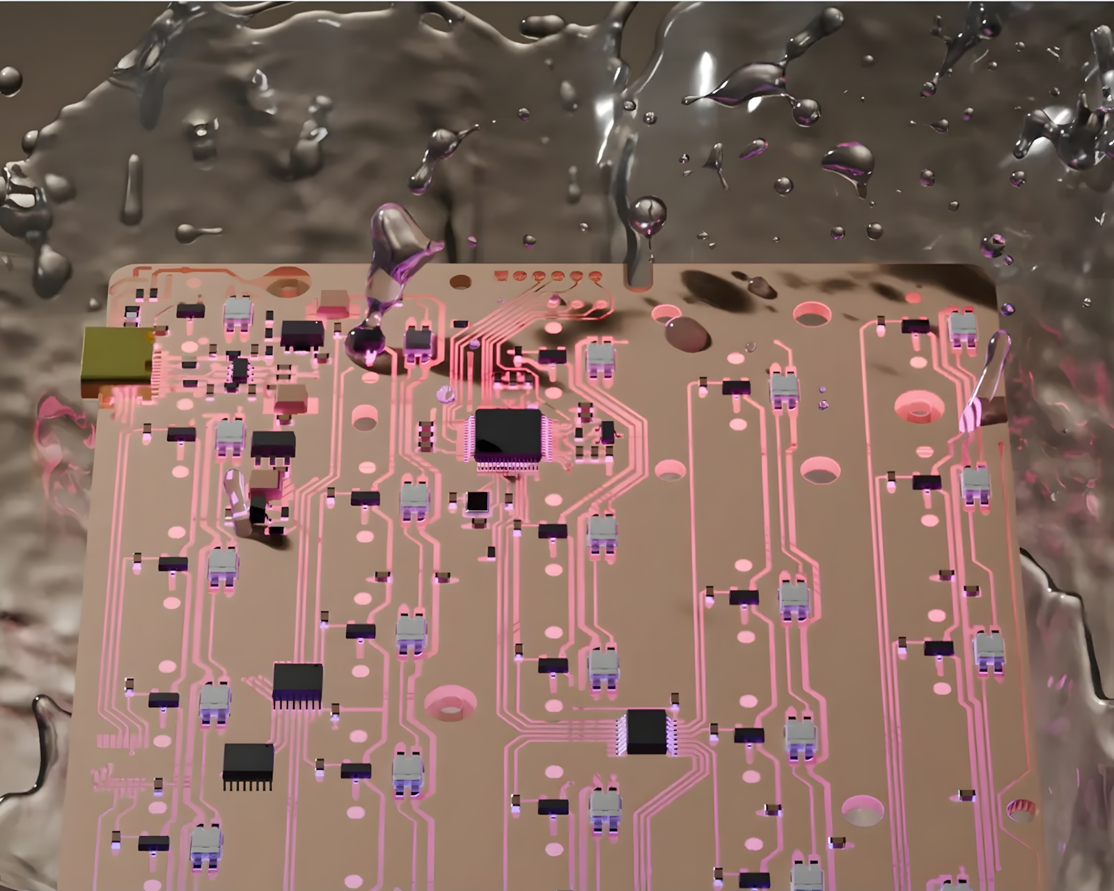 The keyboard details include a unique "Pink Knife Pattern Carved" anodized surface, reflecting advanced craftsmanship. With an N-Key Rollover matrix, users get support for simultaneous key presses, which is important for gaming. The product has a complete nano-coating for water resistance, protecting it from spills. The transparent magnetic switch system provides clear visibility and synchronizes with RGB effects, creating a visual experience.