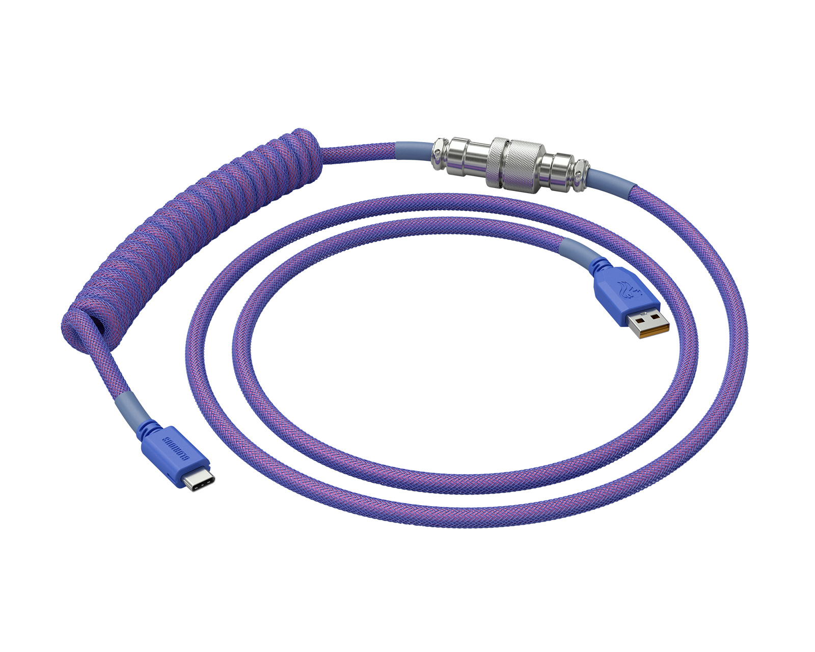 The cable has a gold-plated USB 2.0 connection and is used to connect keyboards via USB-C male and connect to a PC via USB-A male. Its form factor is round, contributing to an aesthetically pleasing design. The plastic-molded USB housing provides extra durability and protective features. Coil Cable is available in a range of colors and is designed to fit the GMMK Pro and most USB-C keyboards.