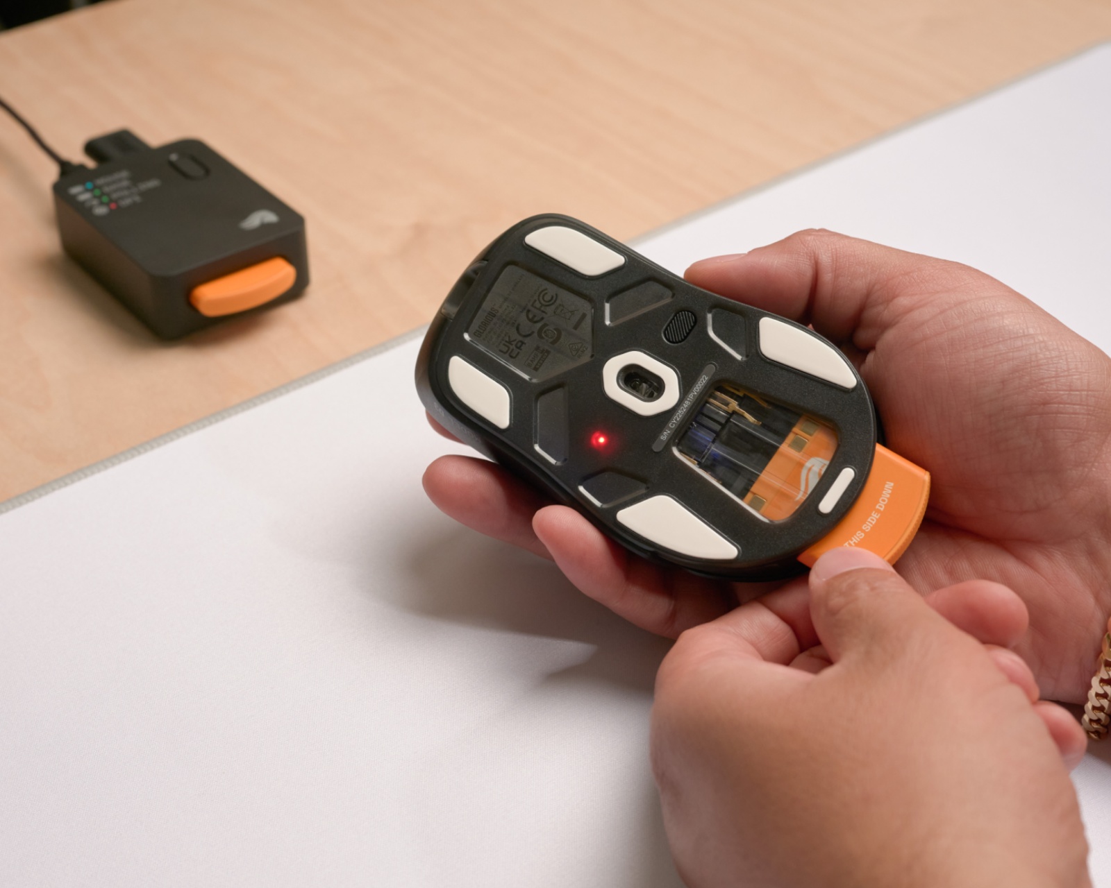 DEMO: Returns and test samples. Good condition.Model D3 is a wireless gaming mouse from Glorious that combines ultra-light ergonomics with RGB lighting and a unique swappable battery solution, providing the user with unmatched wireless freedom without interruption. It has a weight of 69 grams and is designed to enable fast and precise aiming, making it ideal for competitive gamers. The mouse supports a polling rate of 8,000 Hz and comes complete with multiple battery packs, ensuring long-lasting use.