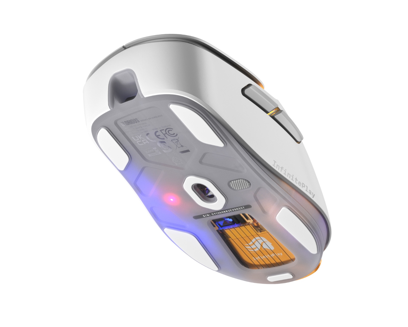 DEMO: Return and test sample. Good condition.Model D3 is a wireless gaming mouse from Glorious that combines ultra-lightweight ergonomics with RGB lighting and a unique swappable battery solution, providing the user with unmatched wireless freedom without interruption. It weighs 69 grams and is designed to enable fast and precise aiming, making it ideal for competitive gamers. The mouse supports a polling rate of 8,000 Hz and comes complete with multiple battery packs, ensuring long-lasting use.