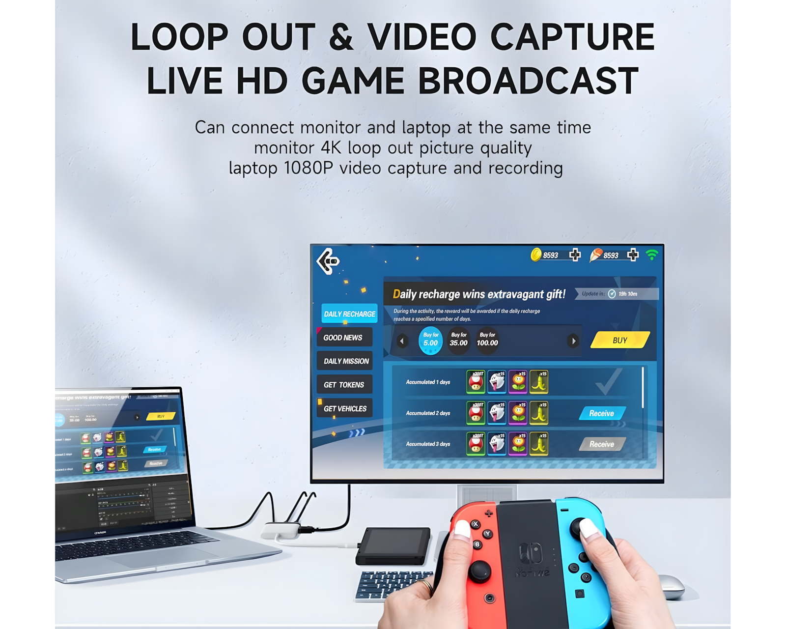 DEMO: Returns and sample products. Good condition.The SWC06S video capture card is a video capture card solution from Hagibis that enables high-quality video recording and live streaming. The product supports 1080P video with a 60Hz refresh rate and includes multiple port options for connecting various devices. The video capture card is compatible with Nintendo Switch, iPhone 16 and 15 Pro Max, as well as Quest 3 for gamers and content creators who require stable and efficient video recording.