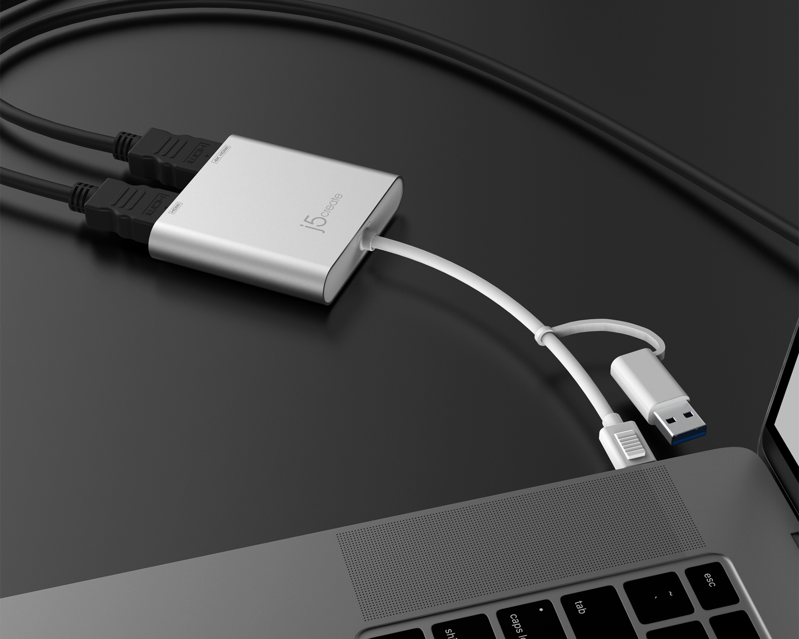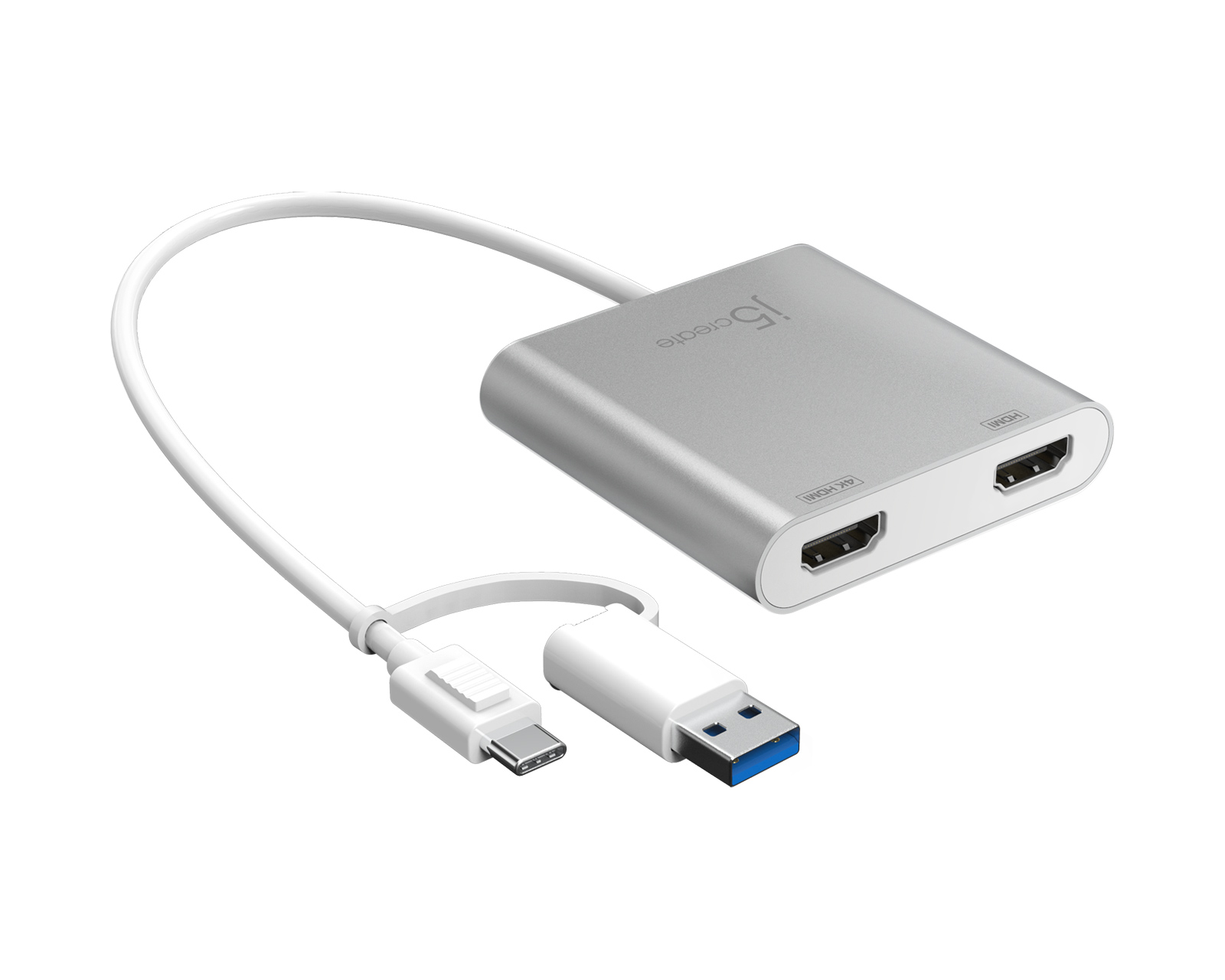 DEMO: Returns and test sample. Good condition.This USB-C to Dual HDMI Multi-Monitor premium adapter from j5create acts as an external graphics card for your laptop. The adapter allows you to have up to two displays connected to your laptop simultaneously, perfect for those who want to increase productivity by having dual screens to work with. One port provides up to 4K and the other provides 2K resolution. Install the drivers simply by connecting the adapter to your device.