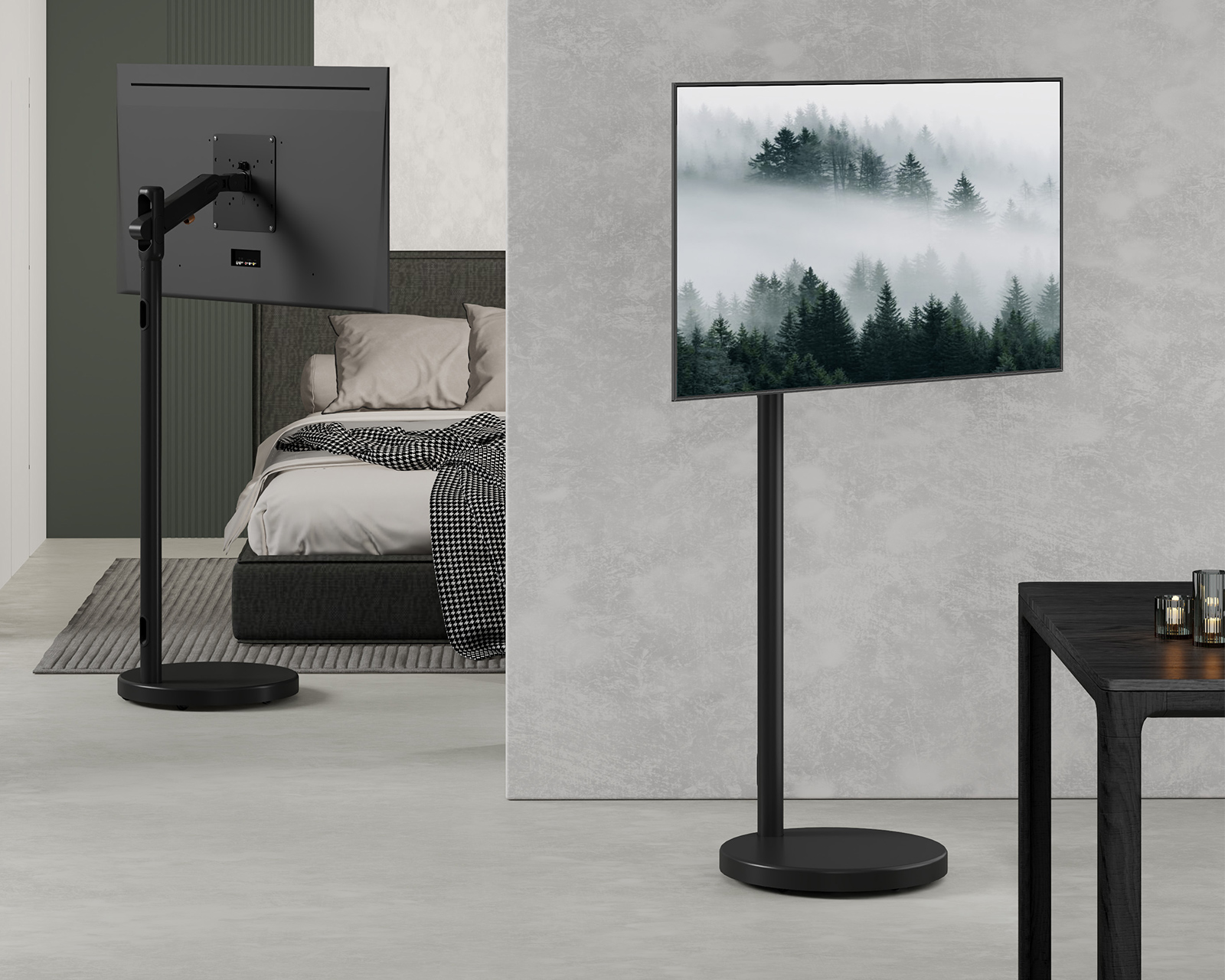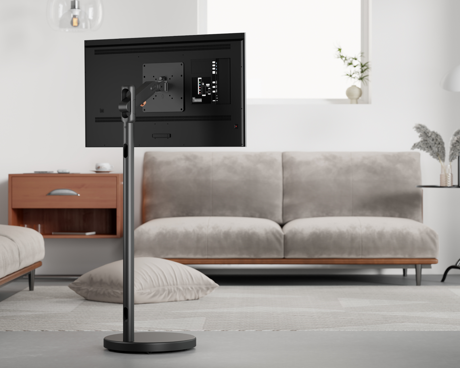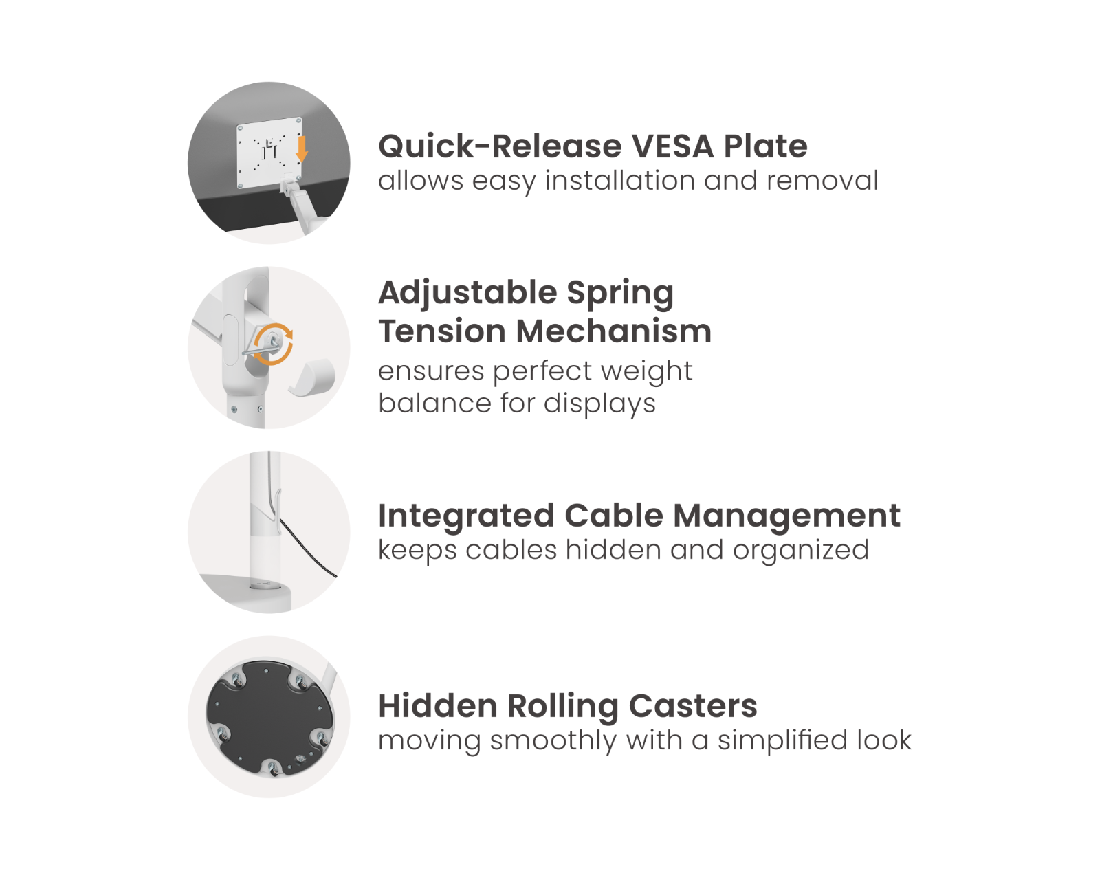 - Hidden cable management and wheels for easy movement