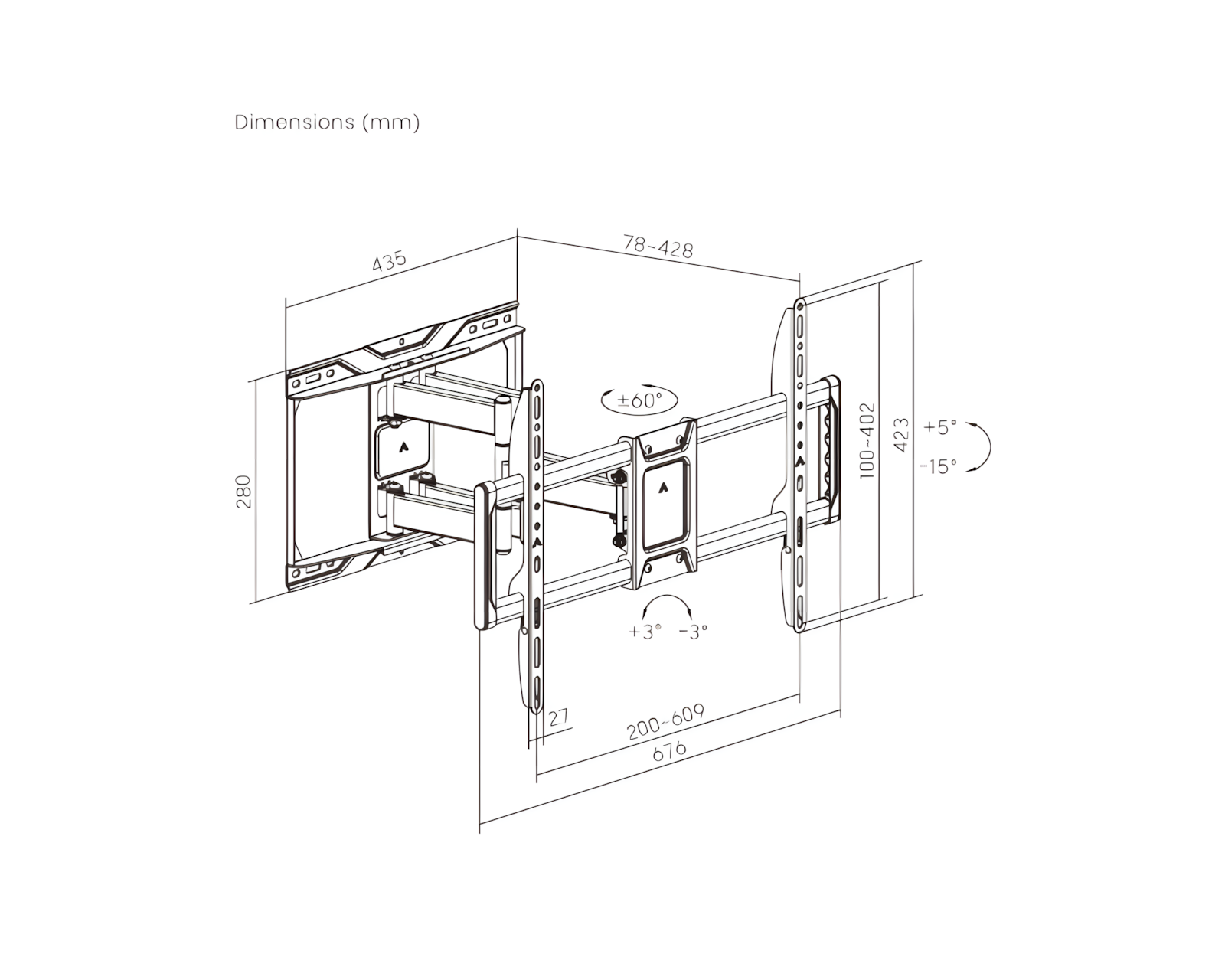 DEMO: Returns and test samples. Good condition.This TV wall mount from MaxMount can handle a load of up to 75 kg. It combines smooth adjustment capabilities with a sturdy construction, making it easy to optimize your viewing experience. The VESA mount between 200x100 and 600x400 makes it compatible with a wide range of TV models and sizes.