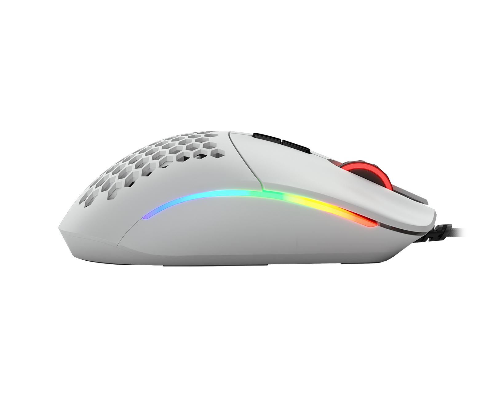 Model I Gamingmus from Glorious combines versatility and comfort in one. This impressive customizable gaming mouse incorporates a spectacular set of technology in an ultra-light, ergonomic right-handed shape. Its total of 9 buttons are fully programmable for personal control in FPS, MMO and MOBA games. Model I weighs only 69g (nice) which is perfect for the long game nights.Easily replace 2 of the side buttons with alternative shapes to match your playing style perfectly. The groundbreaking BAMF sensor, the impressive flexible Ascended Corded Cable and the pure PTFE G-Skates mouse feet provide reliable performance no matter what you play or do.