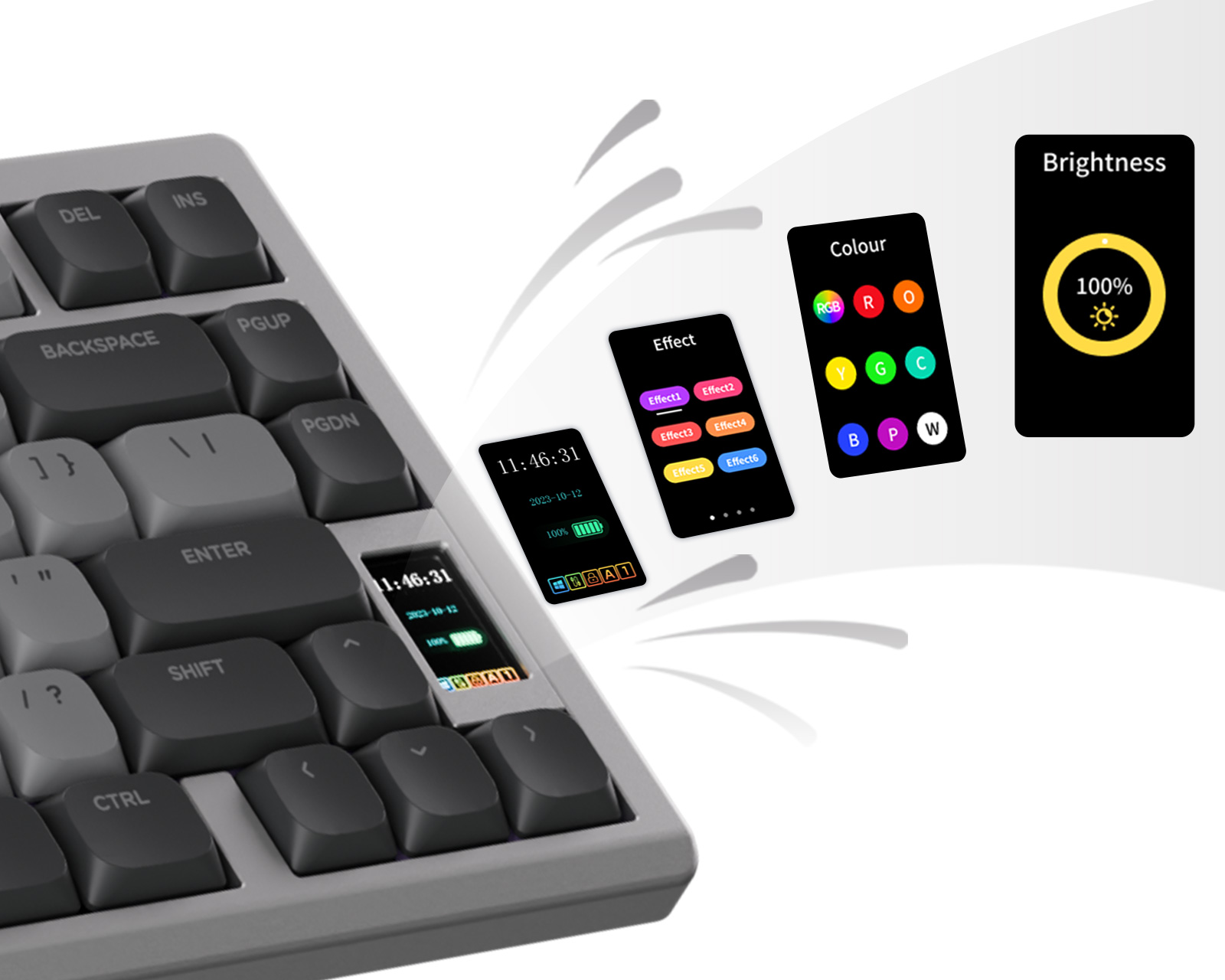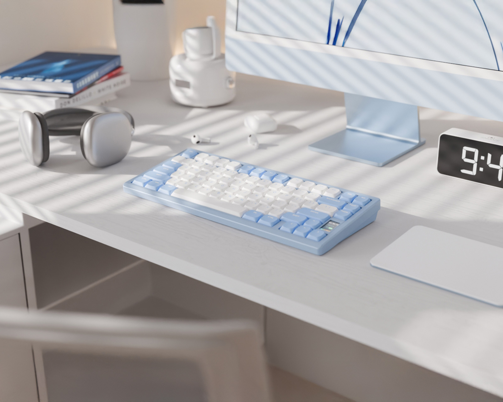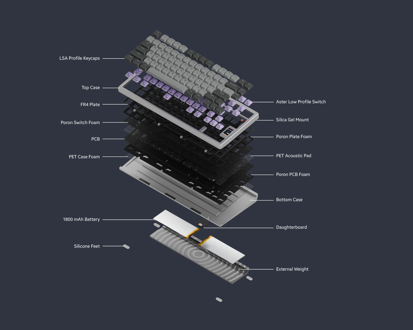 DEMO: Repurchase and test copy. Good condition.Experience the world's first low-profile keyboard with a CNC-machined aluminum chassis, magnetic mounting structure, vibrant colors, and an LCD display. The ND75 LP is beginner-friendly, coming pre-assembled with durable double-shot PBT keycaps and low-profile switches for a stylish typing experience. Its 1.2mm tri-mode PCB and dual 1800mAh batteries provide flexibility both at home and on the go.