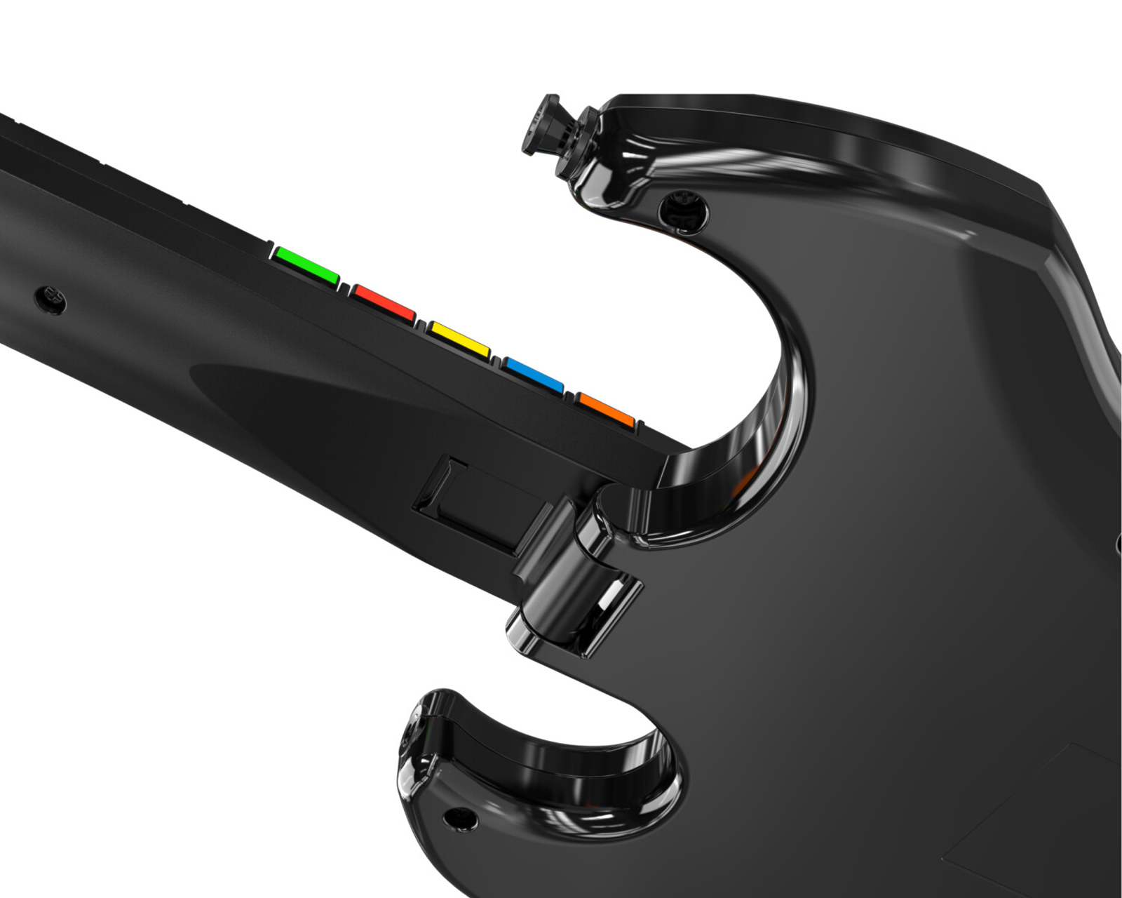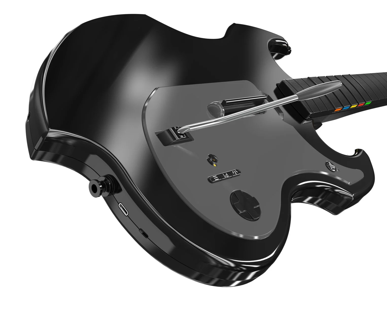 Volume can be easily adjusted directly through the D-pad for a smooth and intuitive user experience. Additionally, the guitar controller is foldable, making it easy to take on the go or store when not in use. Perfect combination of functionality and portability!