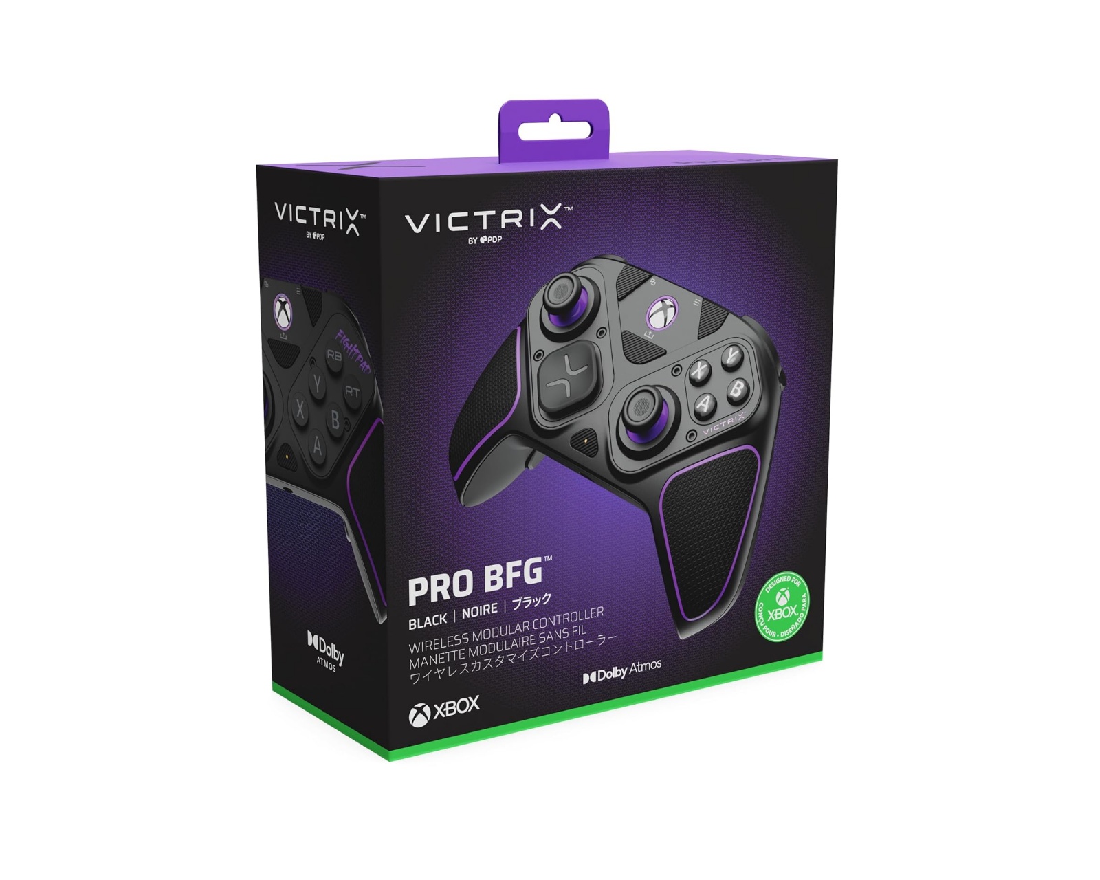 DEMO: Returns and samples. Good condition.The Victrix Pro BFG controller is a game controller from PDP that offers advanced customization options and high precision. It is compatible with Xbox Series X, Xbox Series S, Xbox One, and Windows 10/11. It can be used wirelessly via USB dongle or Bluetooth, or connected with the included cable for tournament play and faster input.