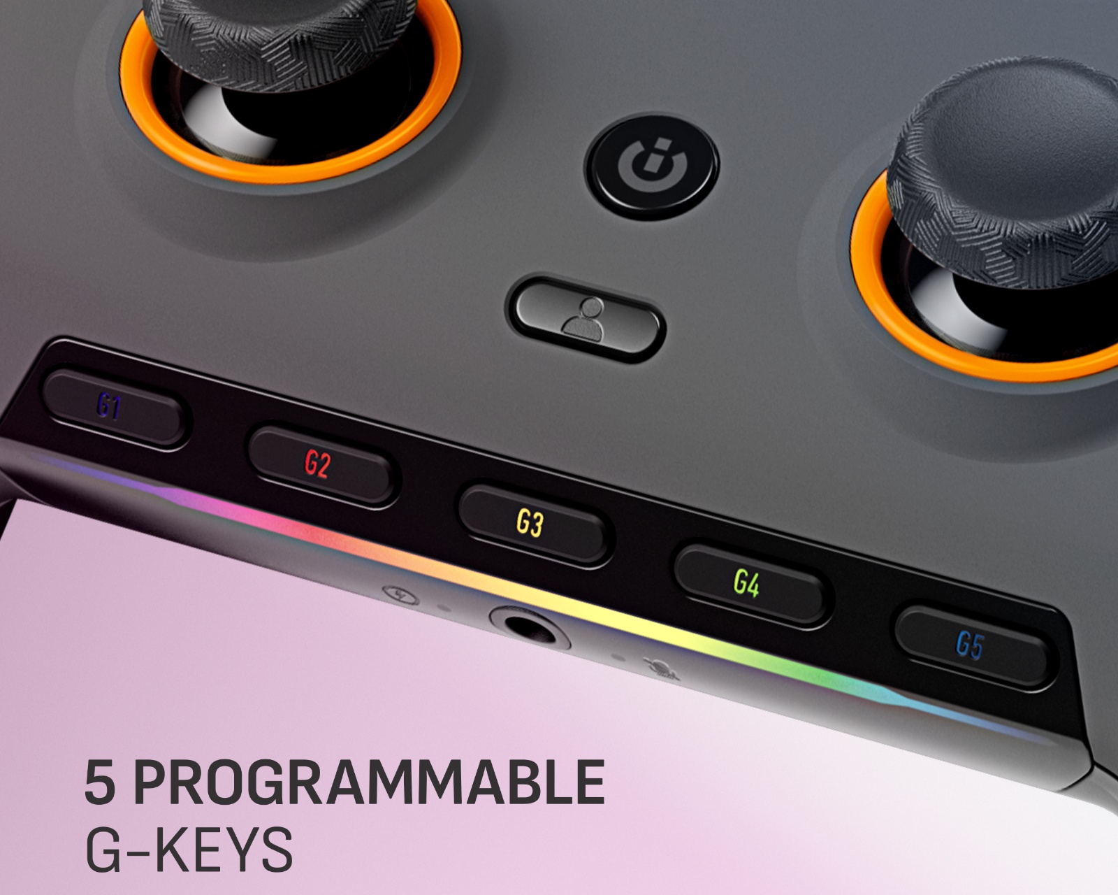 DEMO: Return and test sample. Good condition.Envision Pro V1 is a wireless controller from Scuf, designed for PC use. The controller includes four rear paddles that can be remapped, allowing for faster reactions without moving your thumbs from the sticks. It also features five fully remappable G-buttons for advanced macros and integration with Corsair iCUE. The device has two unique side-mounted SAX buttons for increased configurability, fitting the natural placement of your fingers. OMRON mechanical buttons act like mouse clicks for immediate activations. The controller leverages Corsair SlipStream, providing an ultra-fast wireless connection.