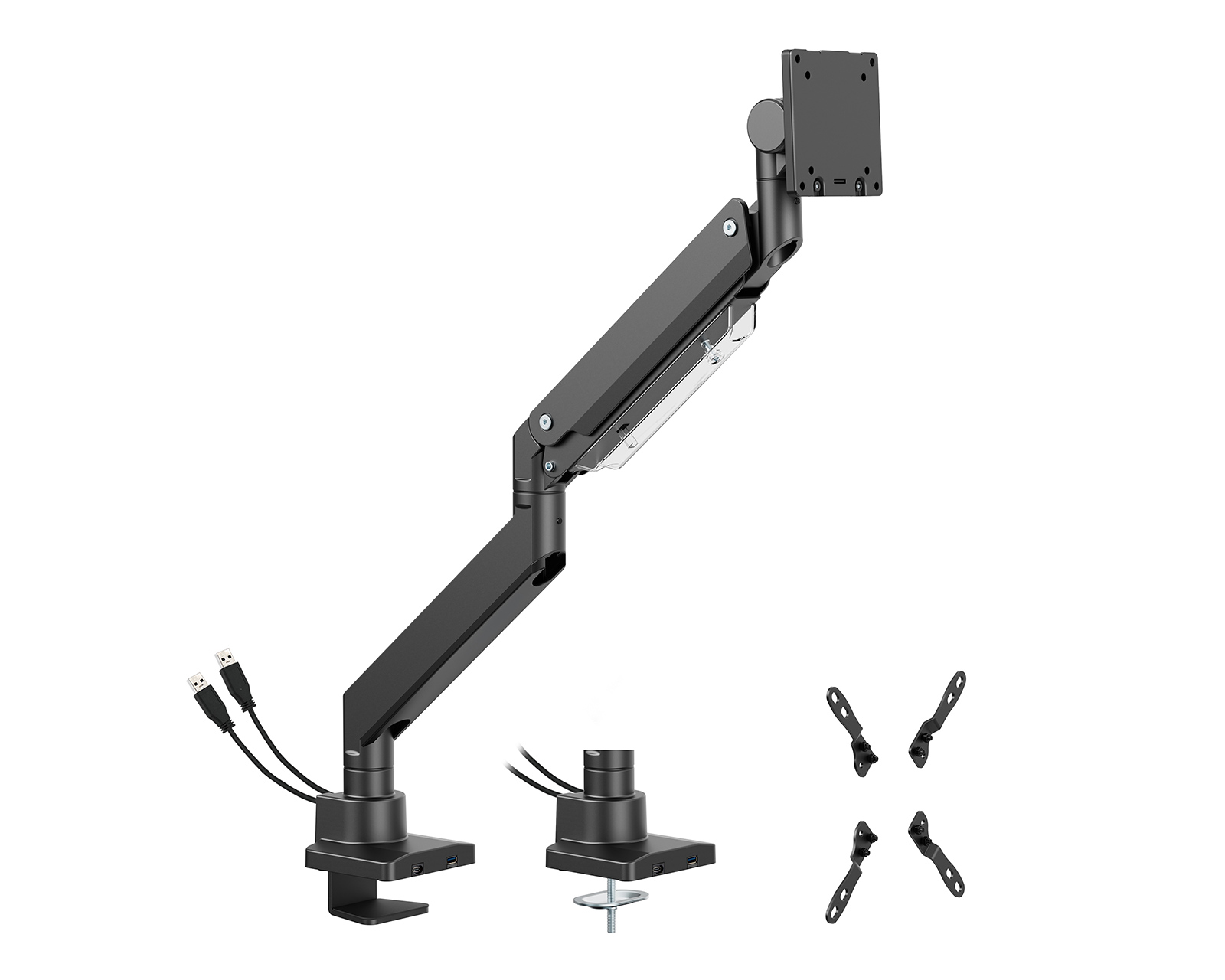 If you are looking for a versatile and powerful display stand, this stand is an excellent choice. In addition to fitting most large screens, it also has 1 USB-A 3.0 port and 1 USB-C port. The monitor stand can be attached to tables that are between 10-45mm in thickness. Buy your MaxMount Super Heavy-Duty monitor arm and let even your biggest and heaviest screen get a better stand.