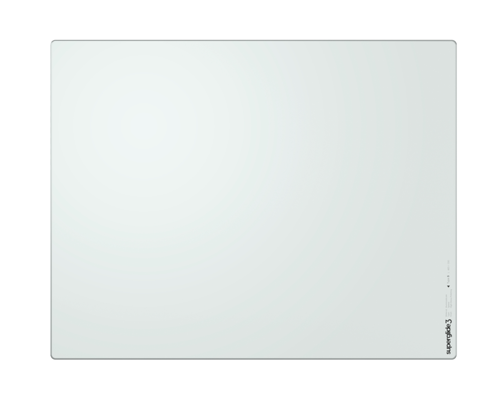 DEMO: Returns and test samples. Good condition.Superglide Pad V3 is a mouse pad designed for gamers seeking precision and speed. It is equipped with a soft R-Edge finish that prevents snagging and ensures stable movements. Its Type-S surface enables fast and accurate movements, making it an option for competitive FPS gaming. Superglide Pad V3 has a thin and lightweight construction of hardened glass at 1.5T, contributing to the pad's glide ability and durability.