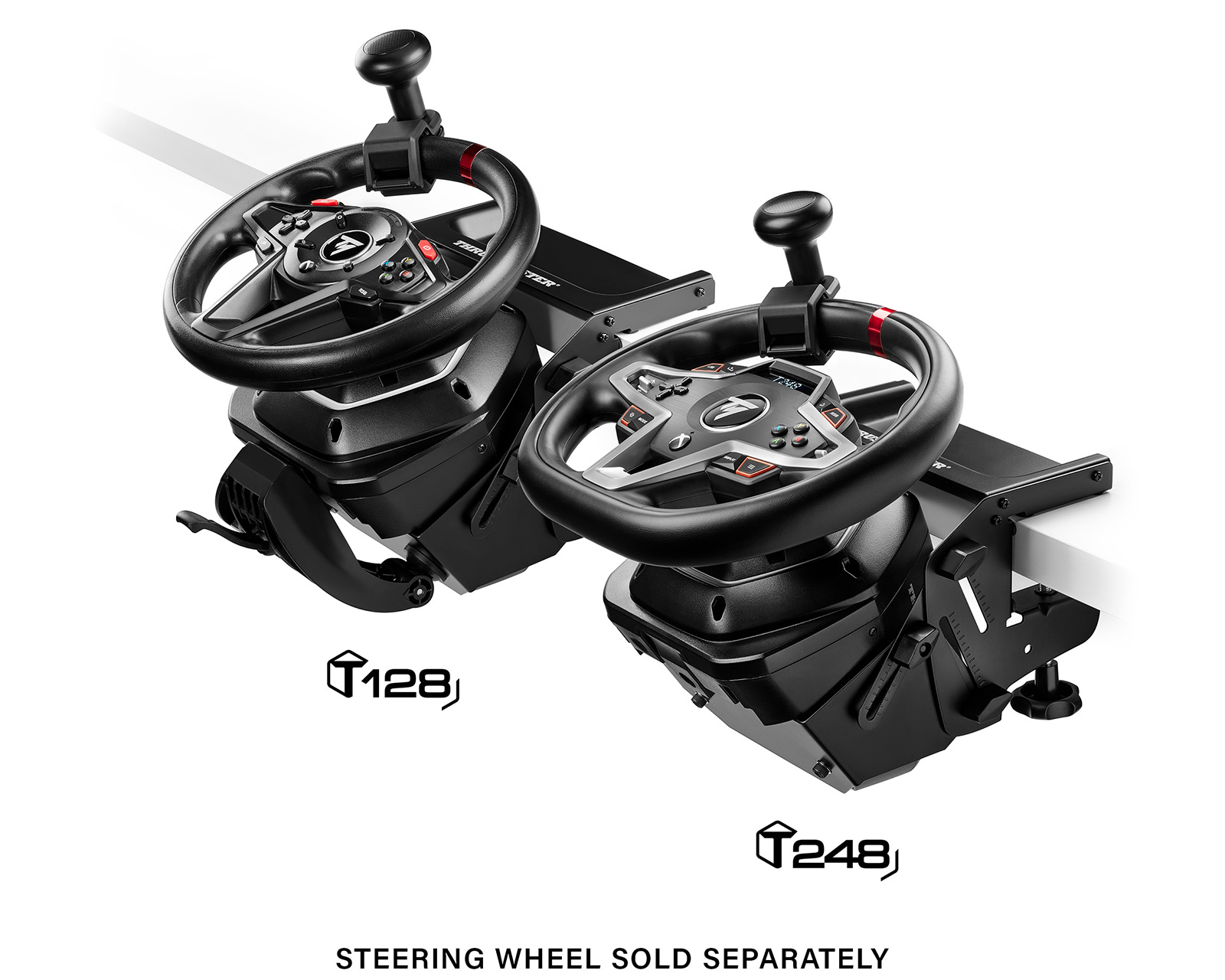 The SimTask Steering Kit from Thrustmaster is the perfect choice to transform your racing wheel into a driver's cabin for heavy vehicles. With this innovative device, you can easily adjust the angle and height of the wheel without tools or disassembly, and quickly switch between different positions to suit a variety of driving needs.