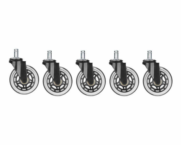 DEMO: Repurchase and test copies. Good condition.Now you can easily and smoothly replace your current chair wheels with these office and gaming chair wheels that offer smooth rolling and are easy to install on the chair. The universal fastening pin means that chair wheels fit the vast majority of models. The wheels are made of robust steel and rubber, which contributes to a long durability. Feel safe on both wooden floors and carpets, the chair wheels provide a quiet movement and a good grip. 3-inch diameter (7.62cm) contributes to increased stability. The package contains 5 chair wheels.
