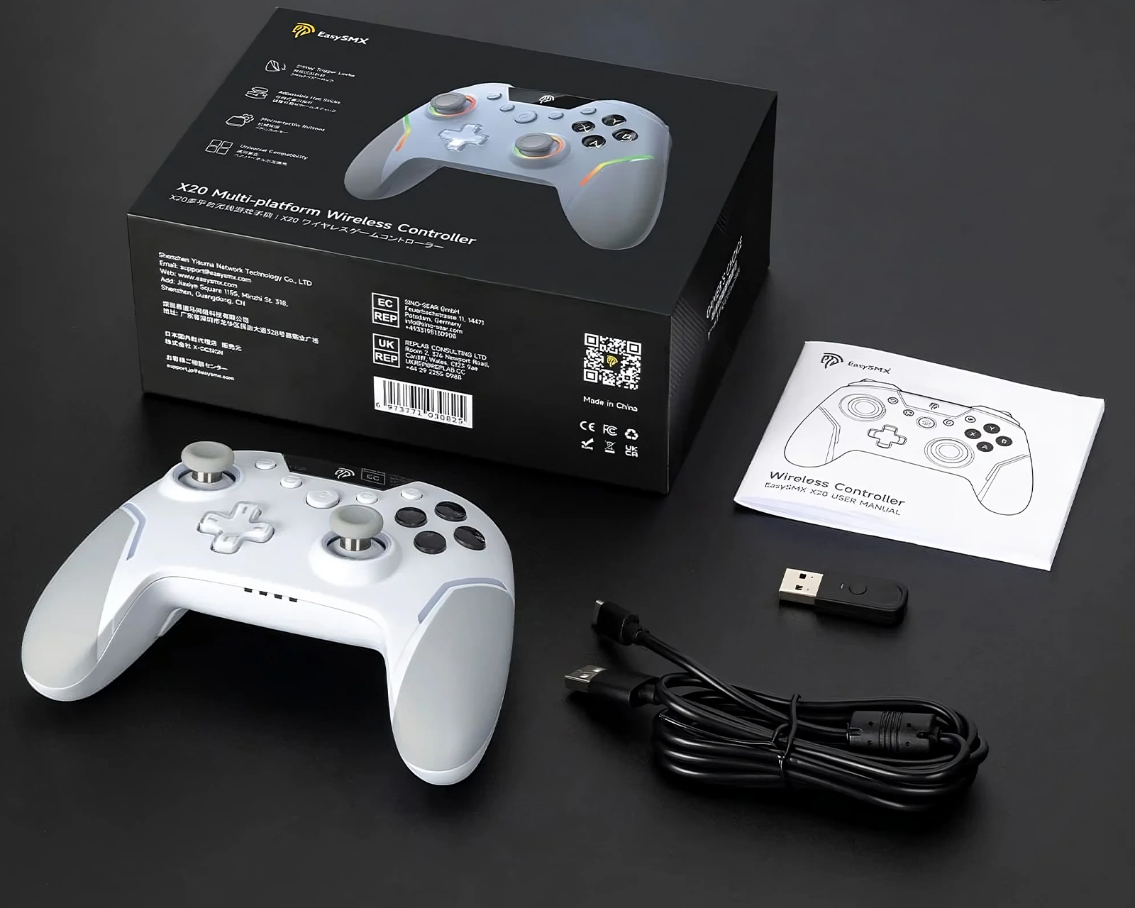 DEMO: Repurchase and test copy. Good condition.Discover the next level of gaming with the EasySMX X20 HE Wireless, a hall effect controller created for gaming enthusiasts who demand precision and versatility. Whether you're dominating action scenes in FPS games or navigating smooth turns in racing simulations, the linear hall effect triggers deliver flawless transition and responsiveness. Customizable thumbsticks make it easy to adjust the height and angle for optimal comfort and control, giving you the advantage of customizing the controller to your unique playstyle.