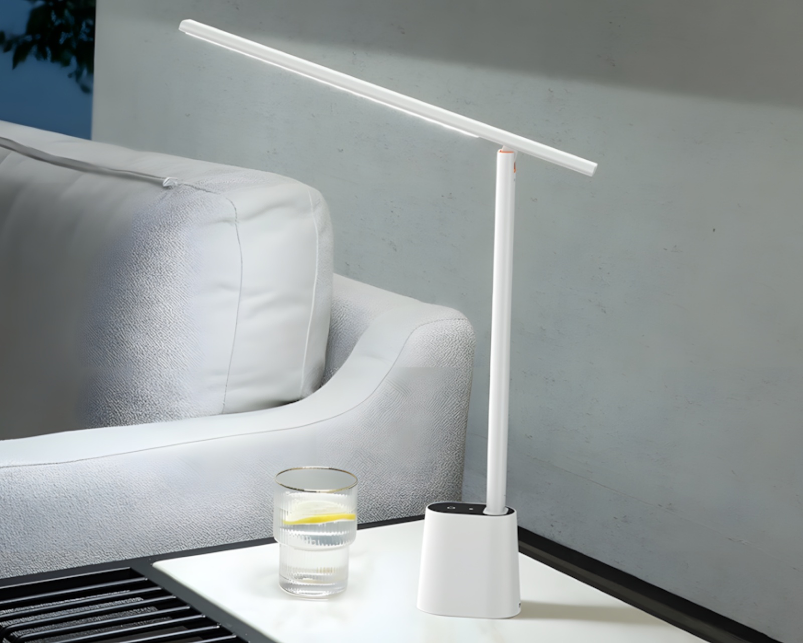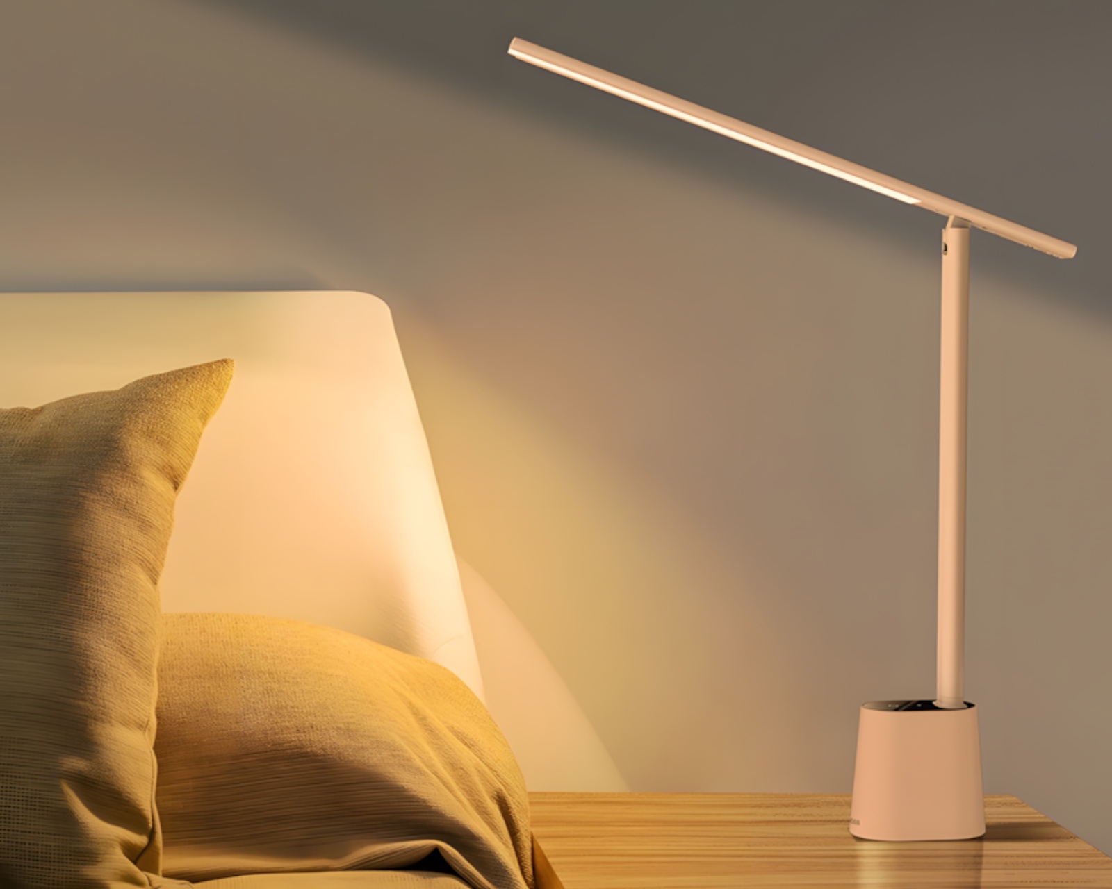 A smart and rechargeable light source that offers automatic brightness adjustment. This lamp is designed to improve the work environment by providing a pleasant light that resembles daylight, making it ideal for both reading and working. With three different color temperatures, the user can easily adjust the light according to the activity, from warm to cool, depending on their needs.The lamp is built with intelligent light distribution technology that automatically adjusts light levels based on the room's lighting. When the room is dark, the lamp increases brightness, while it decreases light in brightly lit environments. The sleek design with a rectangular light distribution efficiently illuminates the workspace without glaring the eyes. The lamp rotates 180°, providing flexibility in adjusting the light angle. With a compact and foldable design, it is easy to transport and uses a long-lasting battery for wireless use.