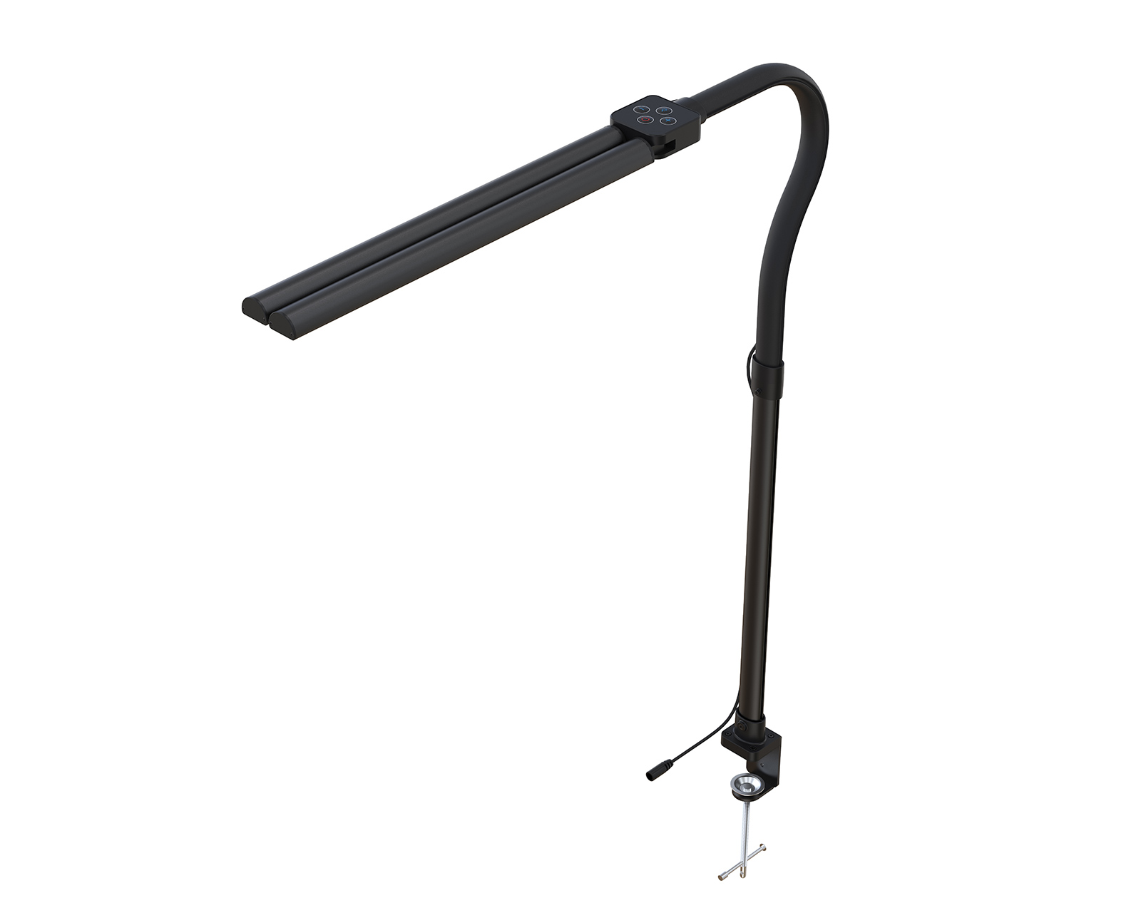 MaxMount LED Desk Lamp with Dimmer is a versatile table lamp from MaxMount, designed for optimal workspace lighting. It features adjustable color temperatures ranging from 2700 K to 6500 K, along with a brightness of 850 lumens, making it suitable for various activities, including reading and crafting. This functional desk lamp is essential for home offices, professionals, and students seeking ergonomic lighting solutions that enhance focus and productivity.The lamp's ultra-wide illumination area makes it ideal for larger desks or dual monitors, ensuring there are no shadows where they're most inconvenient. It comes equipped with a 1.5-meter cable and an accessible dimmer switch, allowing users to fine-tune brightness levels to suit their needs. The compact design saves space, making it perfect for gaming, creative tasks, and multitasking environments. A DC 24V/1A power supply is included, guaranteeing stable and flicker-free lighting in your workspace.