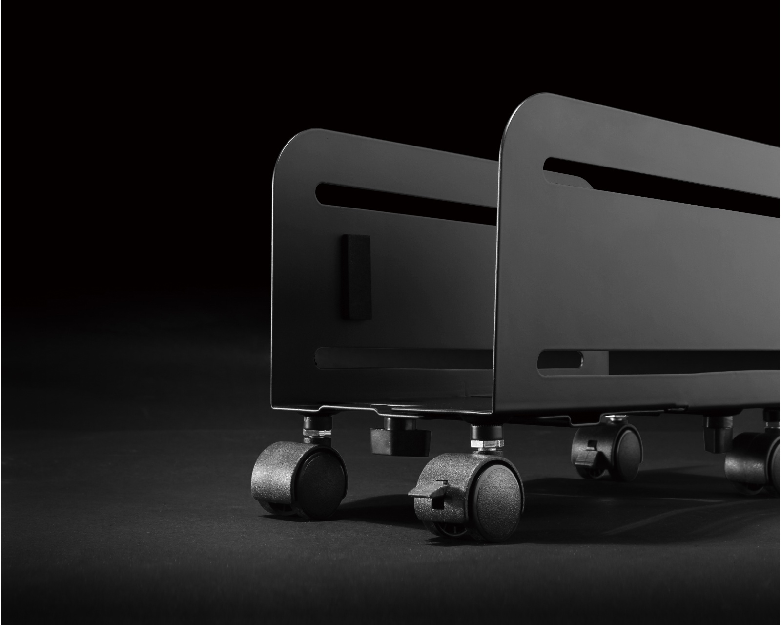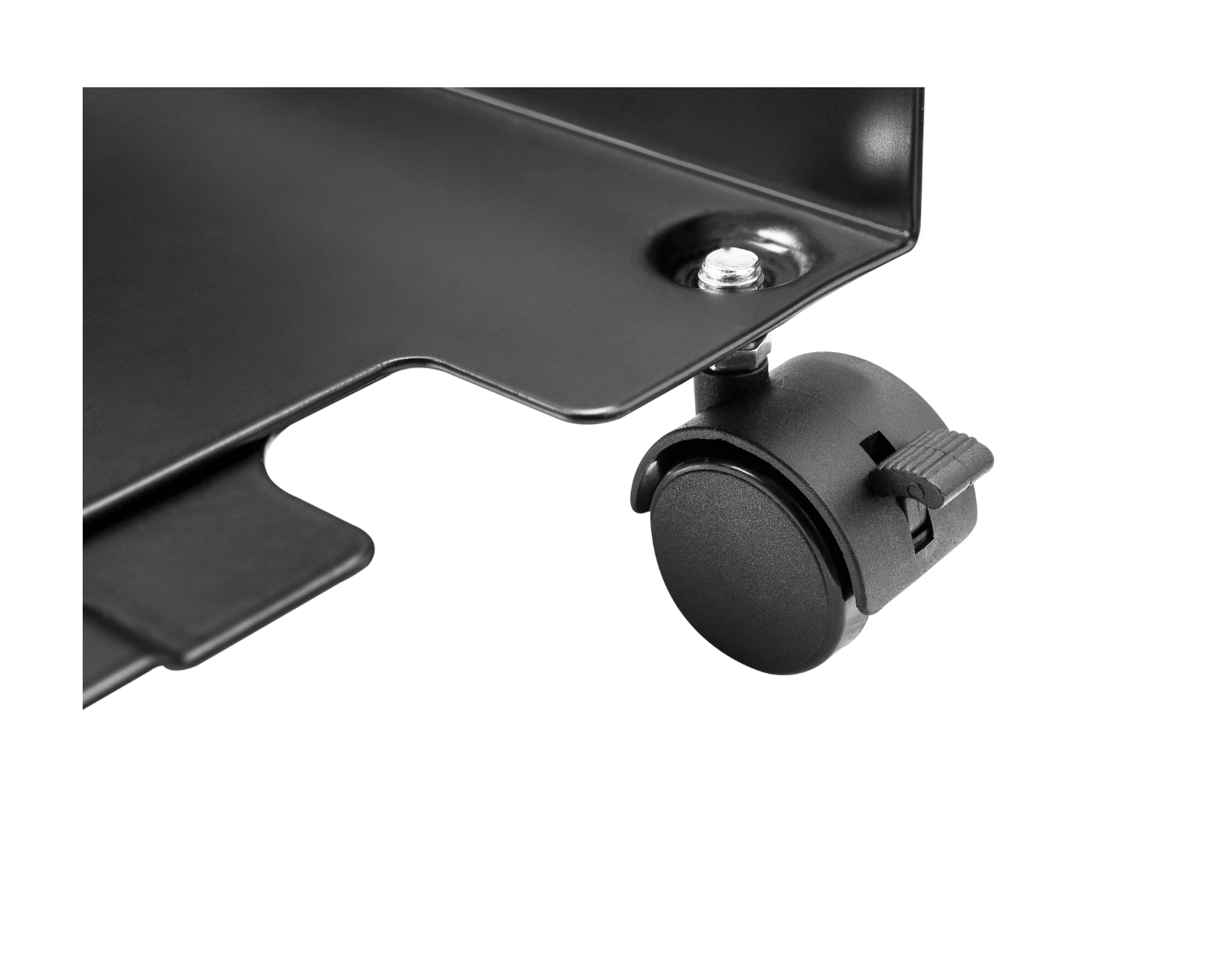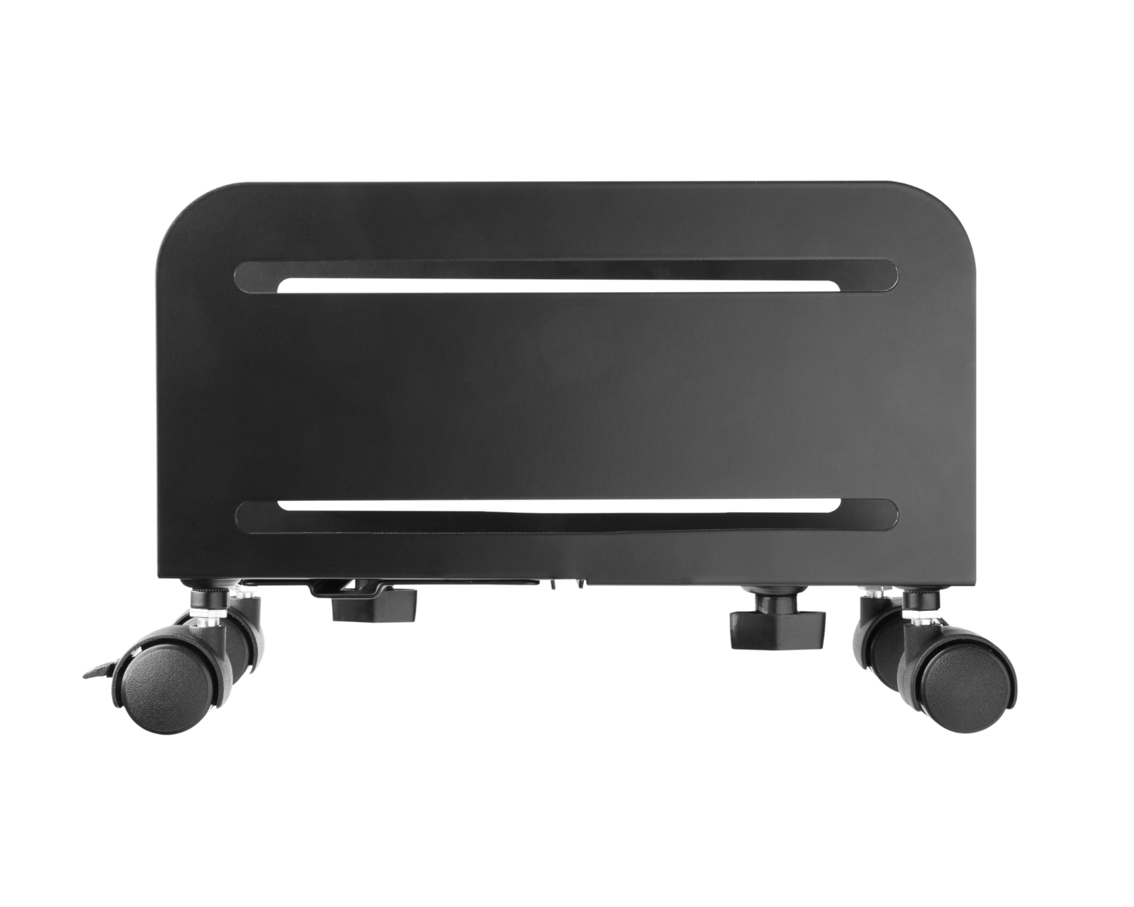 Universal Mobile CPU Stand is a CPU holder from MaxMount that supports most desktop and tower-based computers. This unit is designed for easy access and has an adjustable width that fits ATX towers with a minimum width of 119 mm and a maximum width of 209 mm.The stand improves airflow and saves desk space by placing the CPU underneath or beside the desk. Equipped with four wheels, the stand is easy to transport, while two locking wheels prevent it from sliding. The material is high-quality steel that can withstand a load of up to 10 kg. If you are looking for a CPU stand that fits various ATX cases, this is an option to consider.
