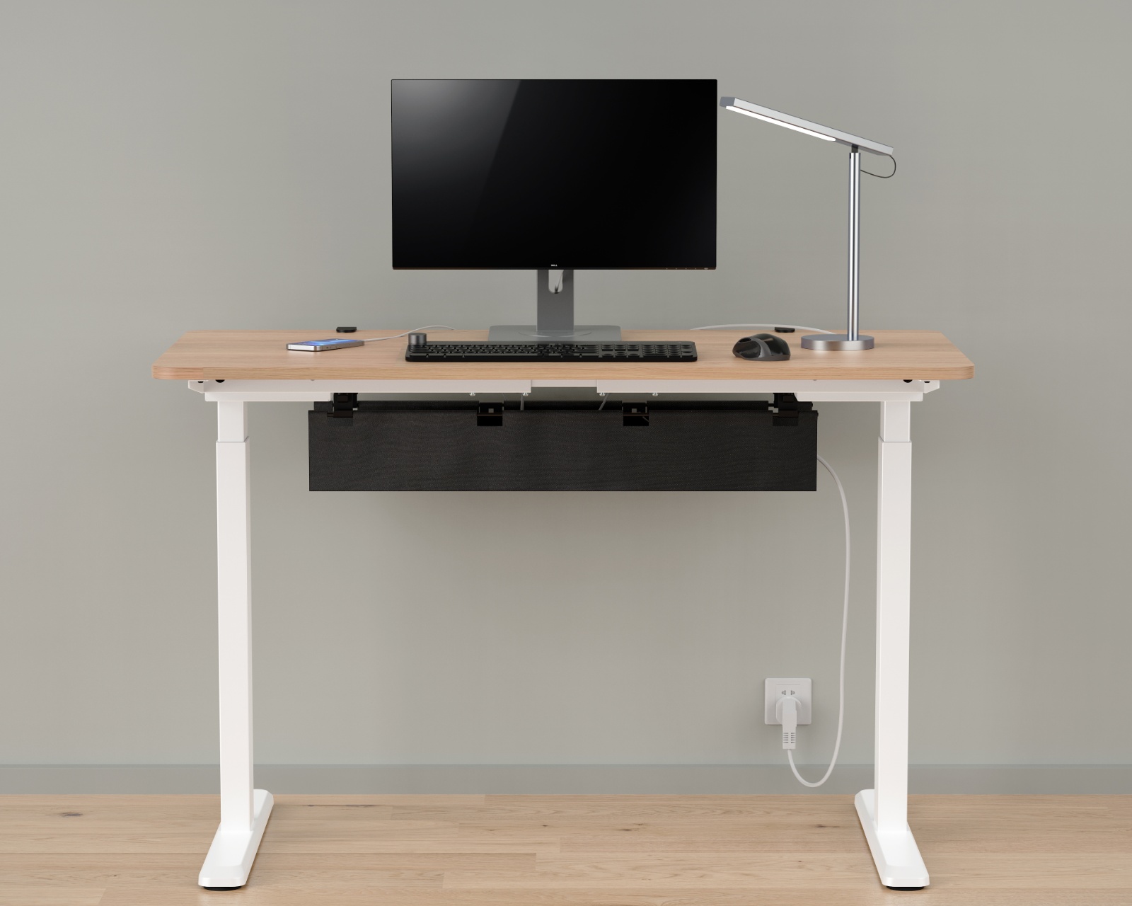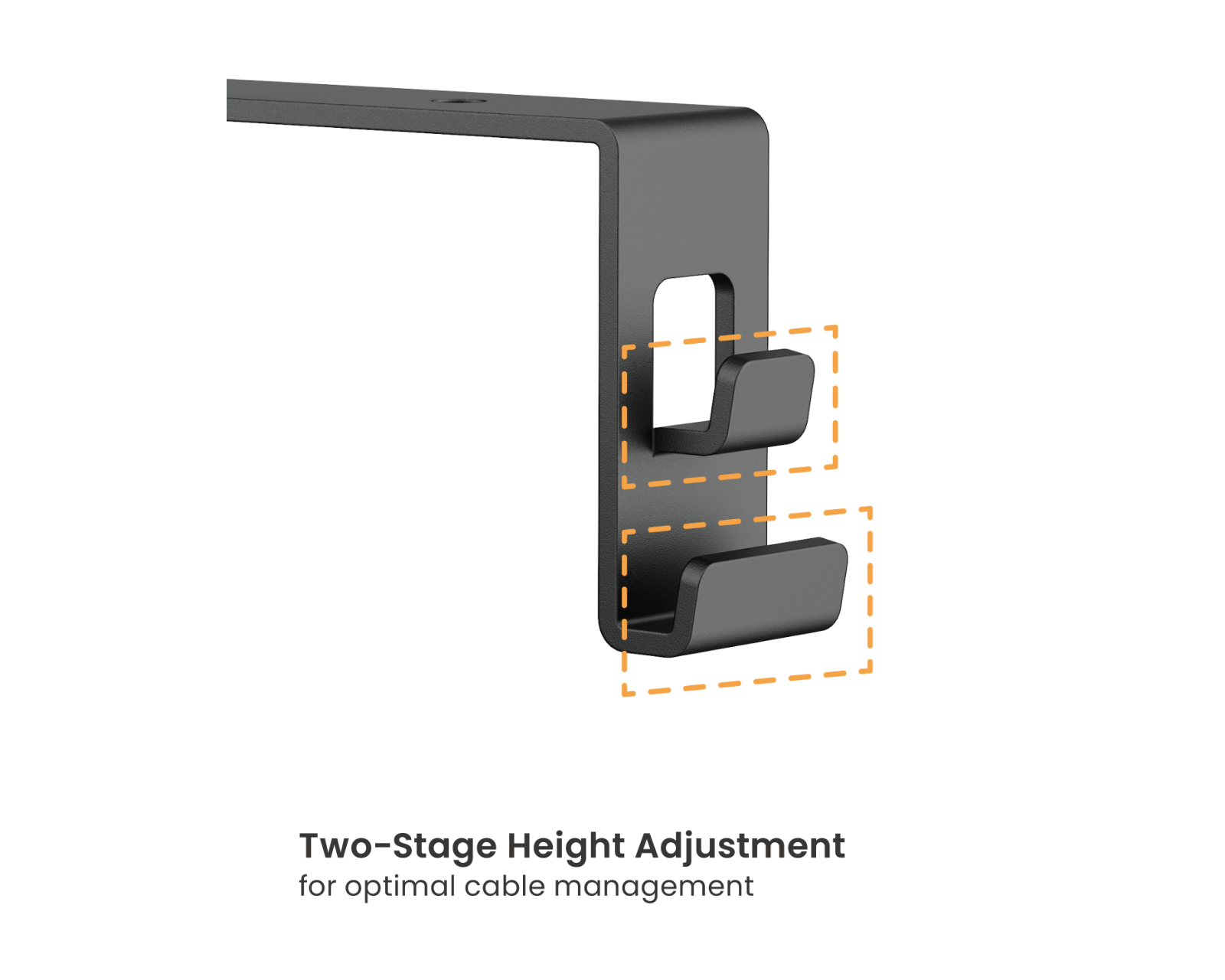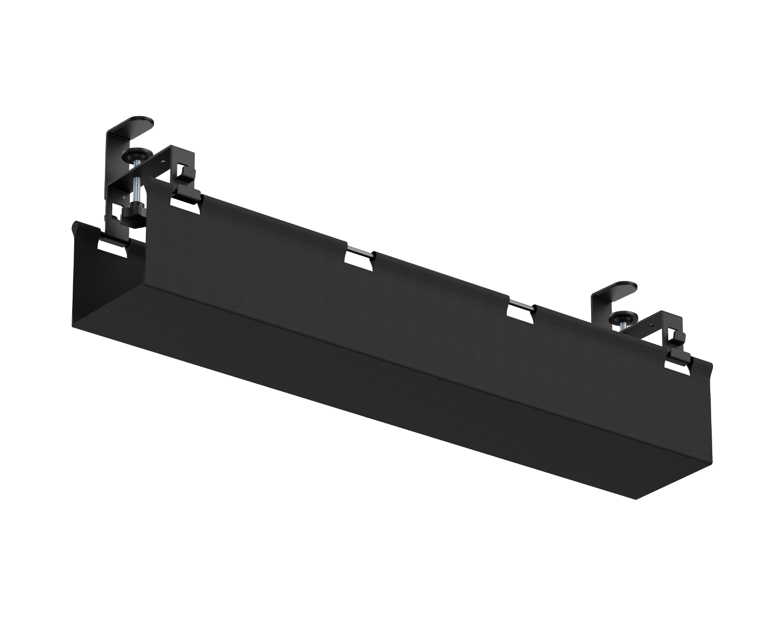 Kabel channel with desk mount from MaxMount effectively hides cables and wires under the desk. The cable channel is easy to install with the desk mount and offers an adjustable height with two settings, providing flexibility for different cables and devices. The cable channel is constructed from a combination of steel, plastic and oxford fabric with a powder-coated surface, ensuring both durability and a professional appearance.The cable channel features built-in mounts for safe cable management and comes with two cable hooks as well as an adjustable cable tie of 2 meters for optimized cabling. With a weight capacity of up to 5 kg, its functionality and usability across different workstations is assured.