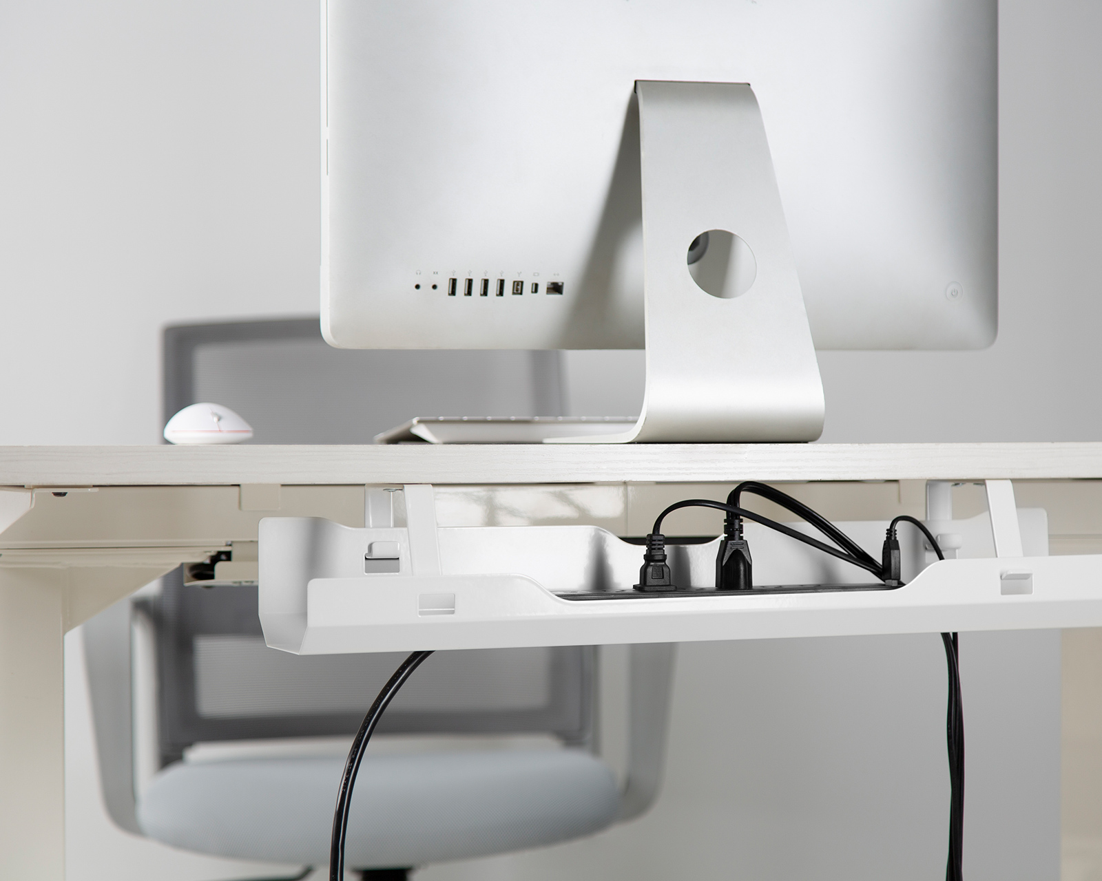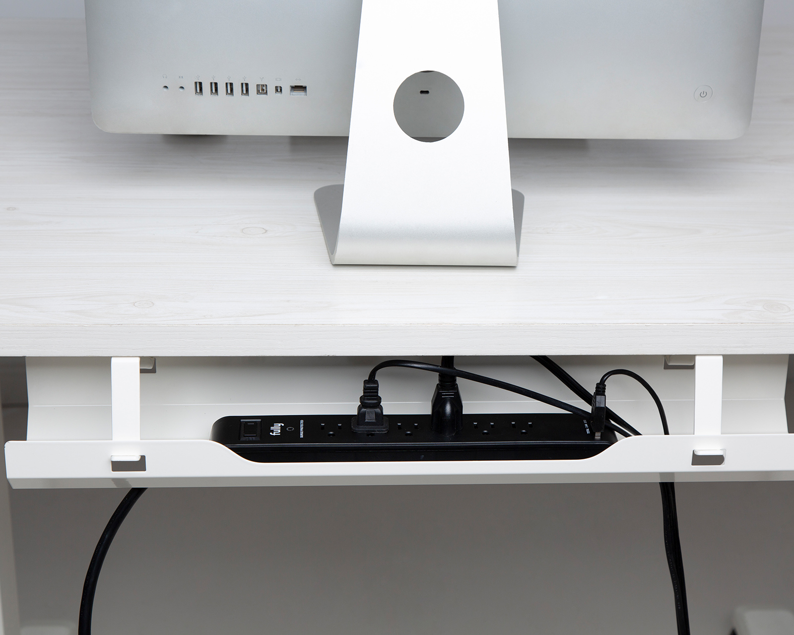 Here is a simple solution for hiding cables under your desk. MaxMount's Premium cable tray is designed to make cable management discreet and easy to maintain. The cable cover can be easily attached to either a height-adjustable desk or a conventional desk.The Premium Under-desk Cable Tray has space for power, network and computer cables. The channel's simple, clean and open design fits perfectly into your home office or gaming room. In addition, you can remove the holder itself from the brackets for even easier cable management.