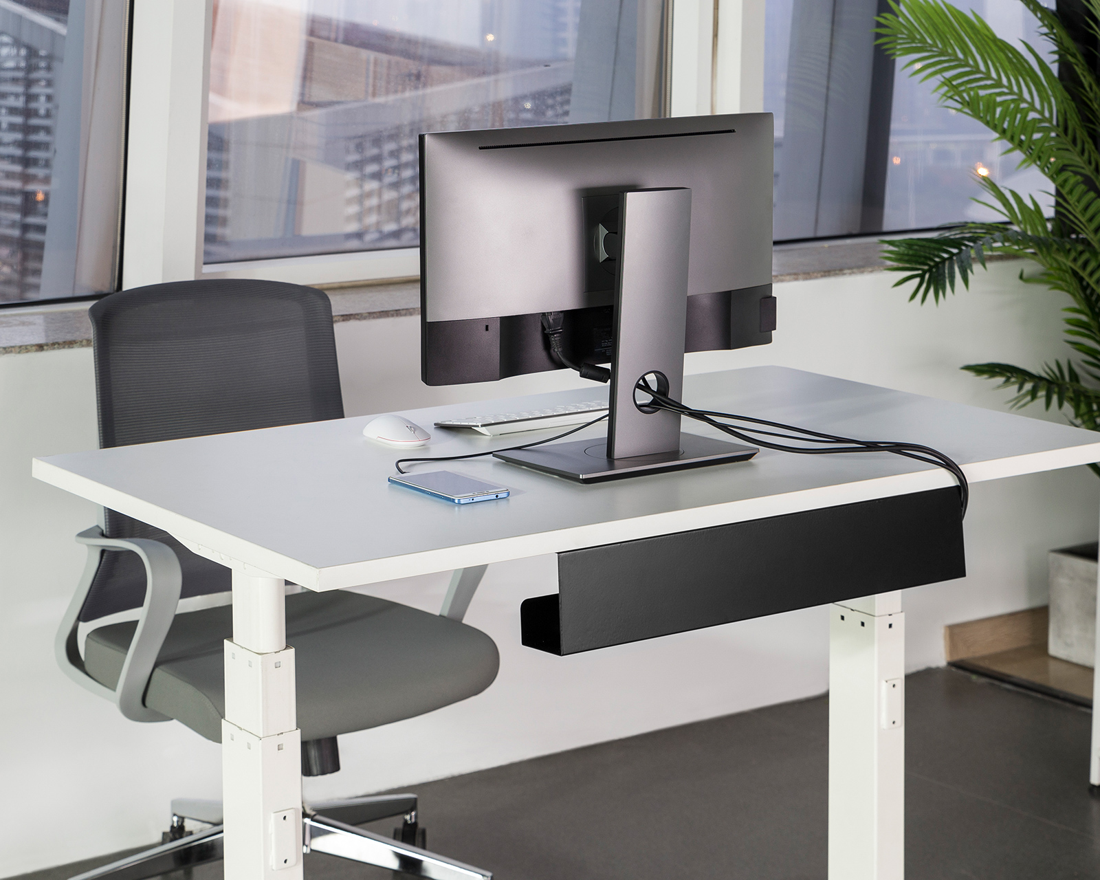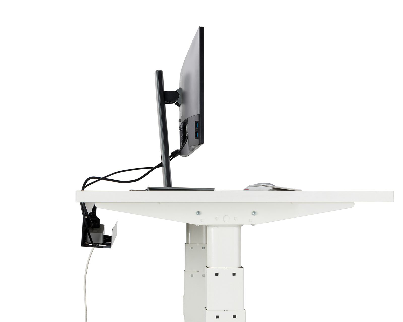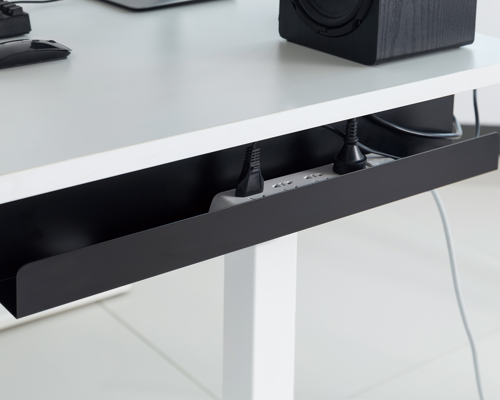 Cable management under the desk is a cable duct from MaxMount that offers a practical solution for discreetly hiding cables under the desk. It has a clean and open design that fits both home offices and gaming rooms. The dimensions of the cable duct are 600x114x76 mm, which provides enough space for power, network, and computer cables.The material is steel and has a powder-coated finish for increased durability and aesthetics. The cable duct can be easily attached with screws, making installation and maintenance smooth. The black color contributes to a discreet yet stylish look that integrates well with most desk environments. The product offers a 2-year warranty, ensuring quality and providing peace of mind to the user.